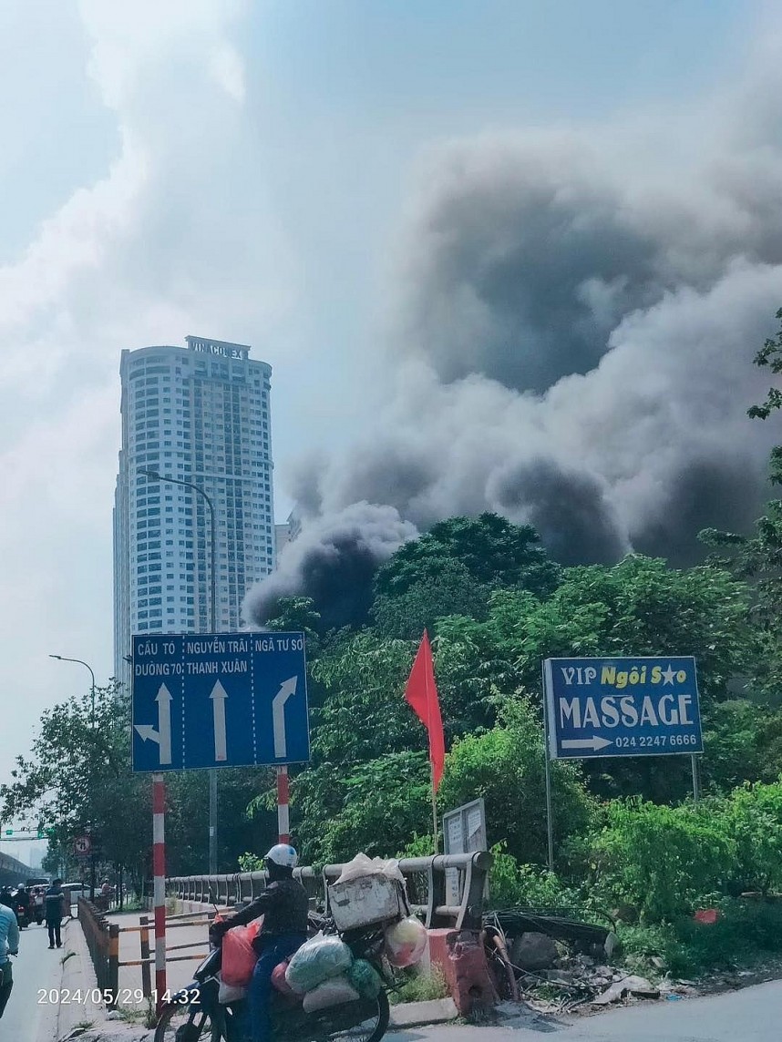 | Cột khói bốc lên hàng chục mét có thể nhìn thấy từ phía đường Nghiêm Xuân Yên (Ảnh; Beat VN) |