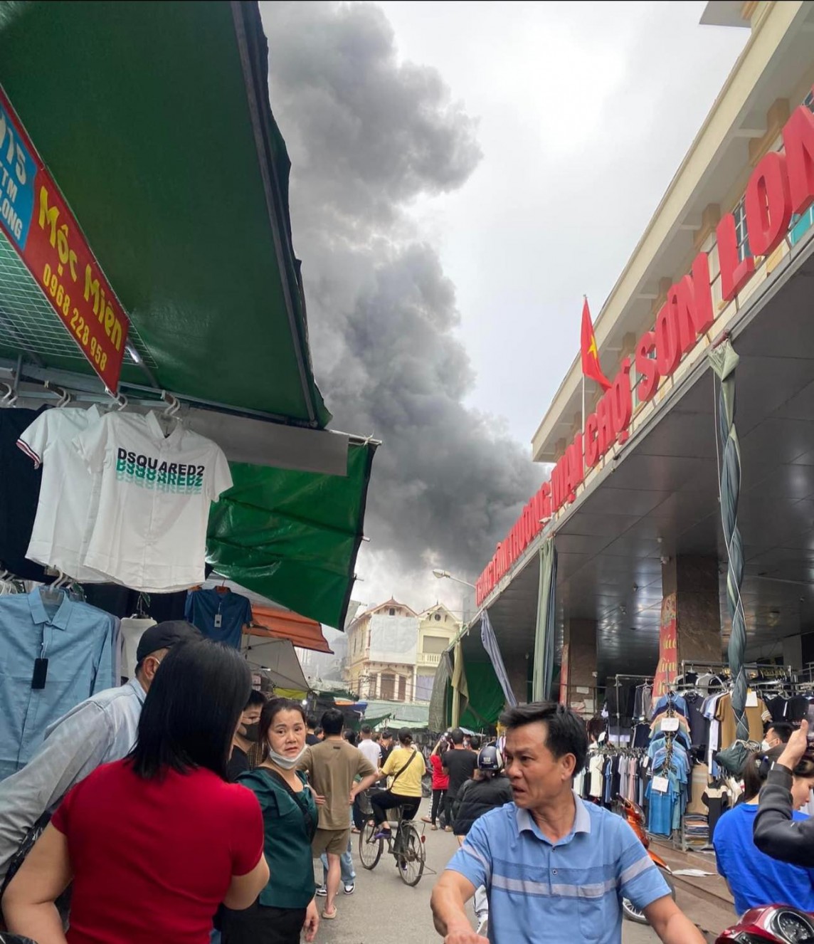 | Vụ cháy xảy ra ngay sát cạnh Trung tâm thương mại chợ Sơn Long |