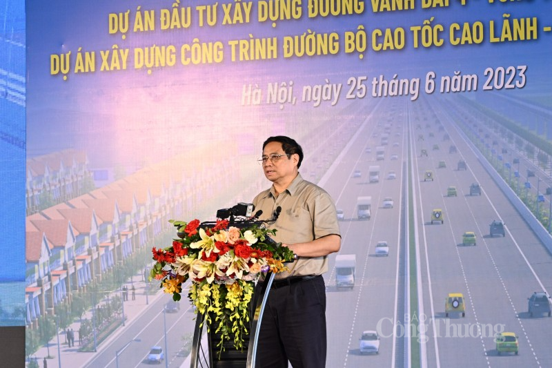 Phát biểu kết thúc buổi lễ, Thủ tướng Chính phủ Phạm Minh Chính ghi nhận những nỗ lực của các cấp, các ngành trong thời gian vừa qua trong việc đẩy nhanh tiến độ khởi công dự án vành đai 4.