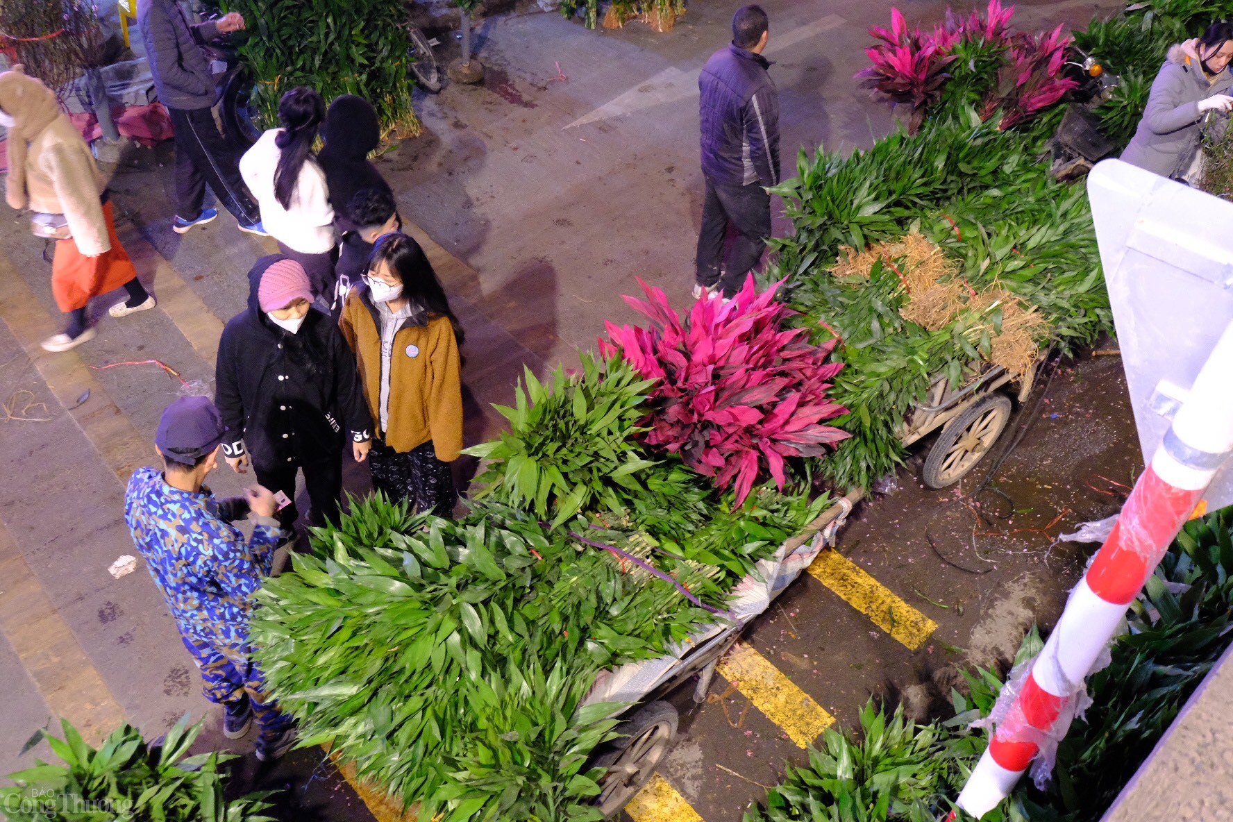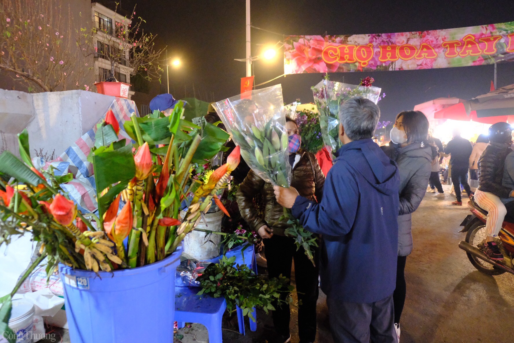 | Vào đêm 28 năm Giáp Thìn (27/1), chợ hoa Quảng An (quận Tây Hồ, Hà Nội) trở nên đông đúc và nhộn nhịp bởi nhu cầu trang trí nhà cửa cho dịp Tết tăng cao. Do đó, người dân liên tục đổ về tham quan và mua hoa tại chợ. Ảnh: Lê An |