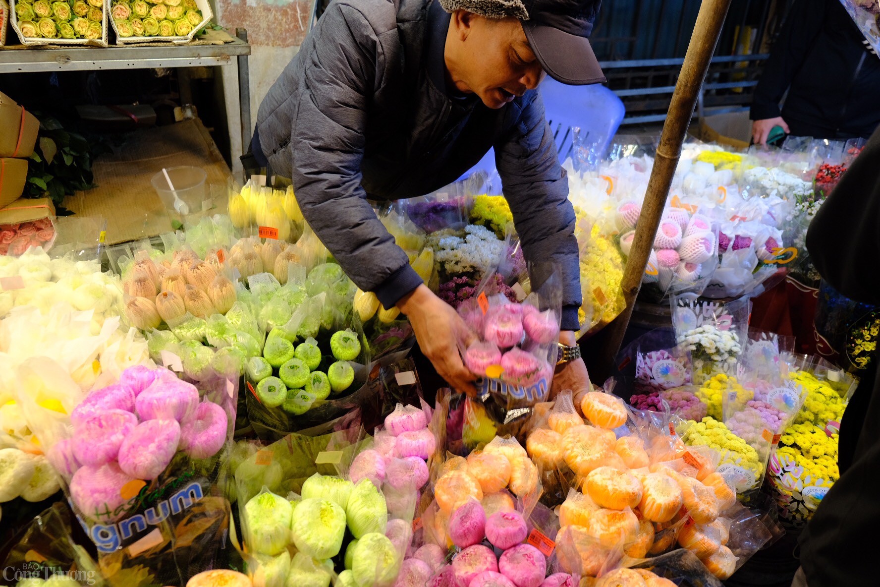Vào đêm 28 âm lịch, chợ hoa Quảng An tại Hà Nội đông nghịt người mua bởi đa dạng loại hoa, giá thành phù hợp, cùng với nhu cầu trang trí nhà cửa tăng cao.