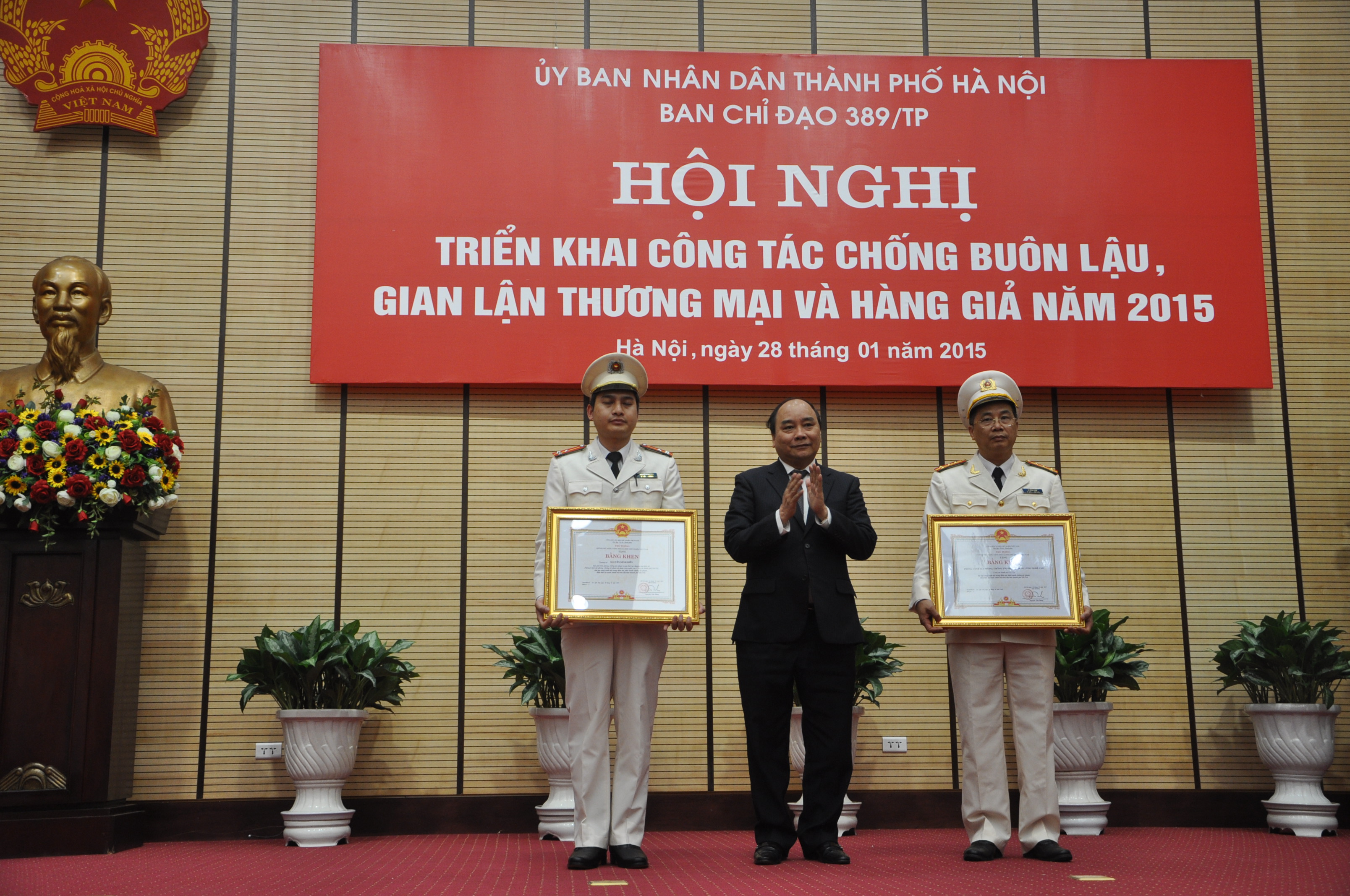 | Phó Thủ tướng Nguyễn Xuân Phúc trao tặng bằng khen cho những cá nhân đã có thành tích trong công tác chống buôn lậu, gian lận thương mại, hàng giả năm 2014 |