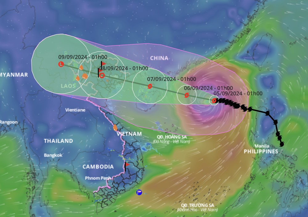 Theo Trung tâm Dự báo khí tượng thủy văn quốc gia, hồi 10h sáng nay 5/9, vị trí tâm bão số 3 ở khoảng 19.1 độ Vĩ Bắc; 115.5 độ Kinh Đông, trên vùng biển phía Bắc khu vực Bắc Biển Đông. Sức gió mạnh nhất của bão ở cấp 16 (184-201km/h) giật trên cấp 17. Bão đang di chuyển theo hướng Tây, với tốc độ khoảng 10km/h. Trung tâm Dự báo khí tượng thủy văn quốc gia dự báo, từ khoảng đêm mai 6/9 đến sáng ngày 9/9, ở khu vực Bắc bộ và Bắc Trung bộ có khả năng xuất hiện một đợt mưa lớn diện rộng với tổng lượng mưa phổ biến từ 100-300mm, có nơi trên 500mm. Mưa lớn có khả năng gây ra tình trạng ngập úng tại các vùng trũng, thấp; lũ quét trên các sông, suối nhỏ, sạt lở đất trên sườn dốc. |
