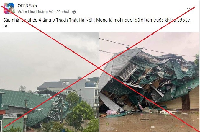 | Thông tin “sập nhà 4 tầng lắp ghép ở Thạch Thất, chưa rõ thương vong” là thông tin giả. Ảnh chụp lại từ OFFB Sub. |