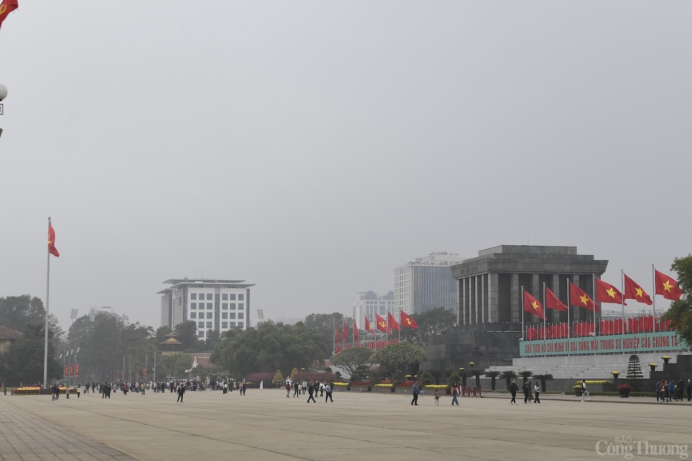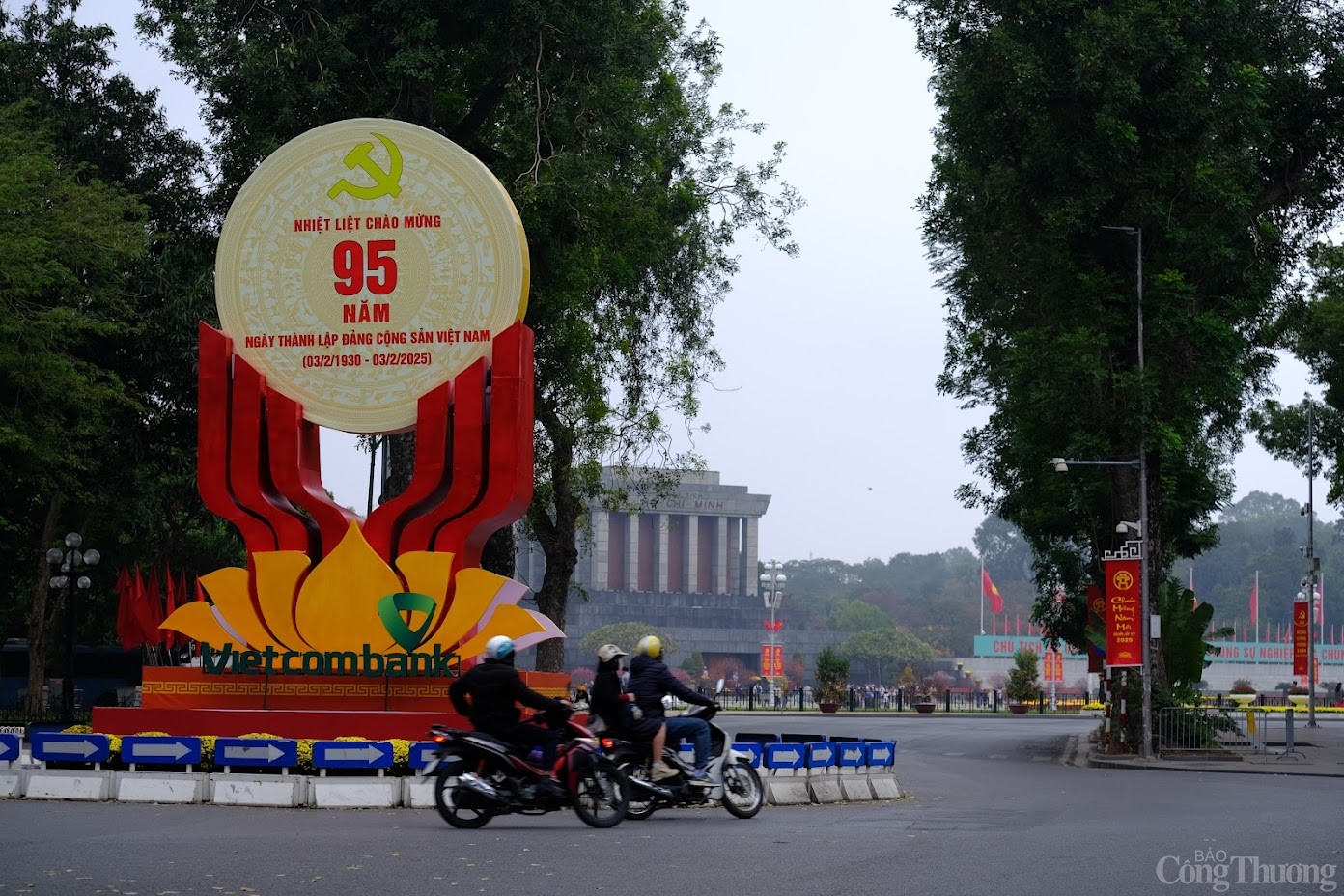 | Khu vực xung quanh Lăng Bác những ngày này cũng được trang hoàng cờ hoa, pano, áp phích, khẩu hiệu chào mừng Ngày thành lập Đảng |