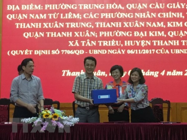 | Đại diện Sở Quy hoạch - Kiến trúc Hà Nội bàn giao hồ sơ Đồ án thiết kế đô thị hai bên đường vành đai 3 cho các quận, huyện liên quan |