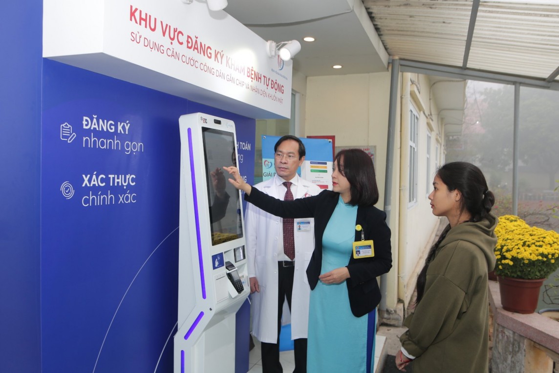 Hướng dẫn người dân đăng ký khám bệnh tự động. Ảnh: Linh Phạm