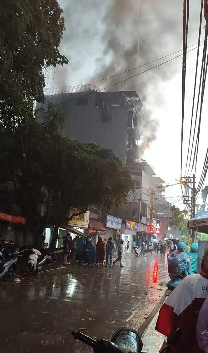 | Hỏa hoạn tại căn nhà cao tầng lúc trời mưa khiến nhiều người hoảng loạn. |