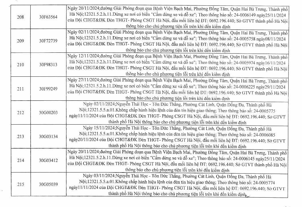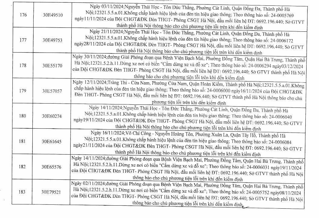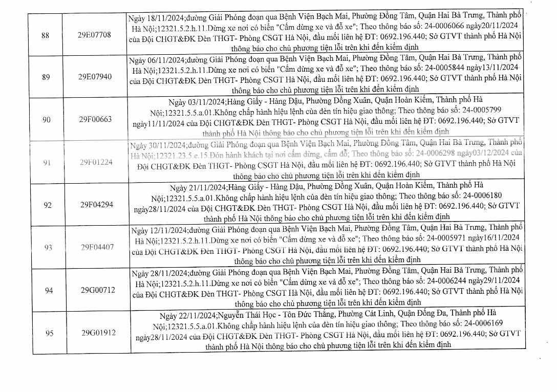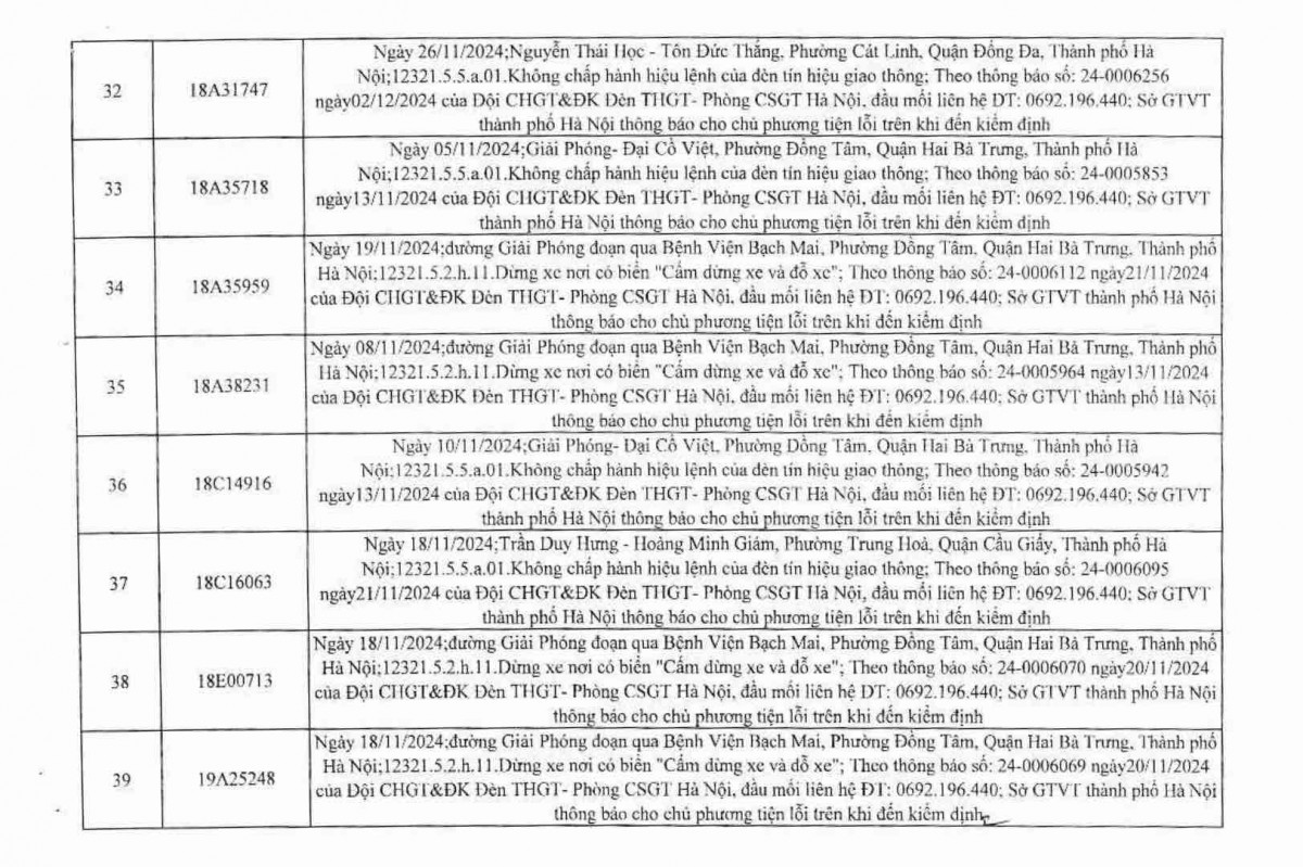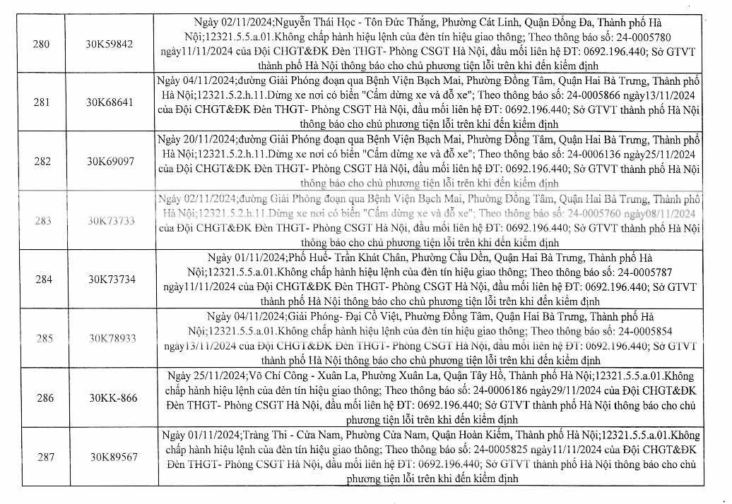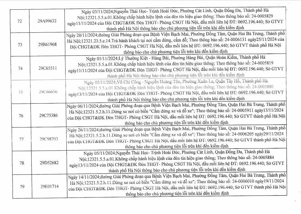 | Danh sách xe phạt nguội từ Công an thành phố Hà Nội cung cấp |