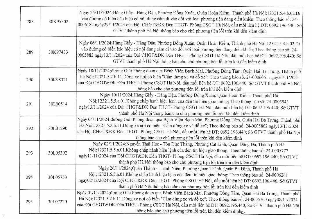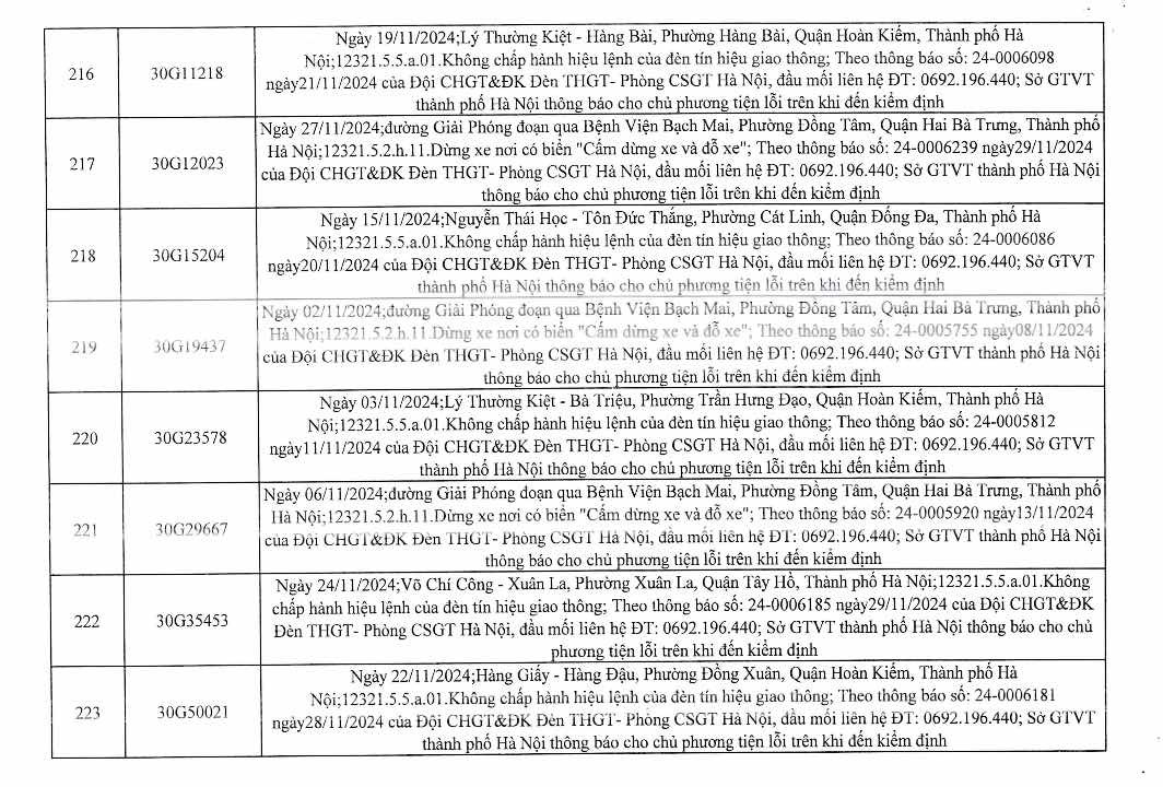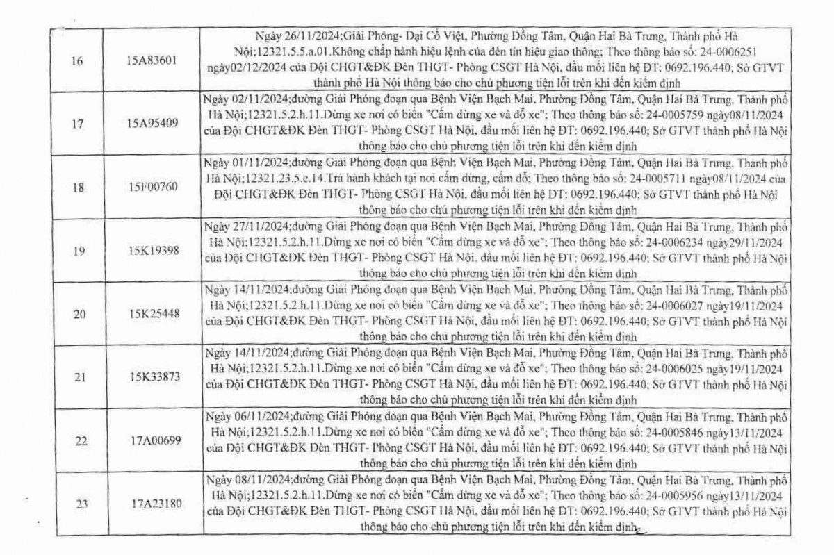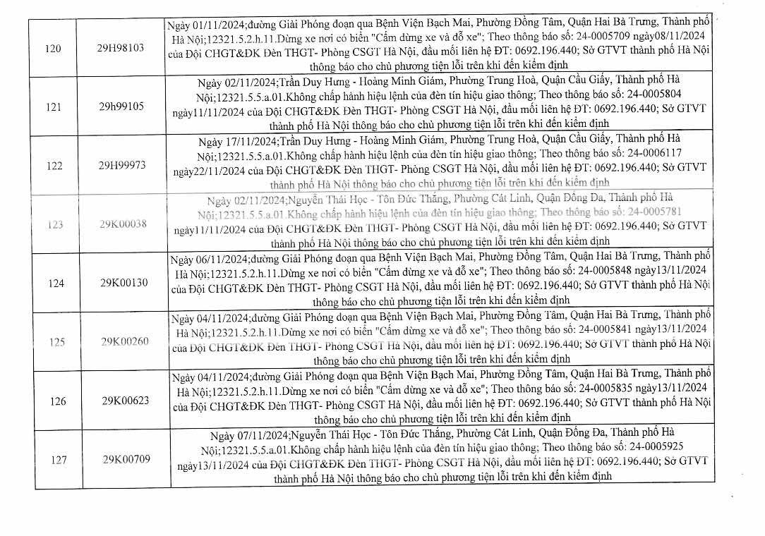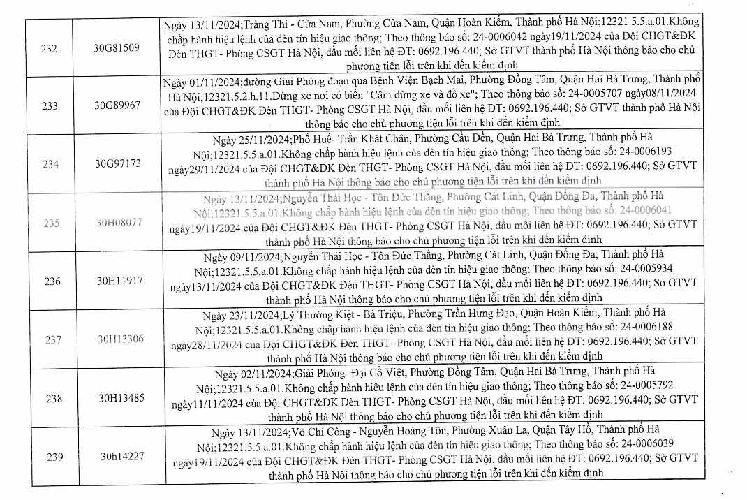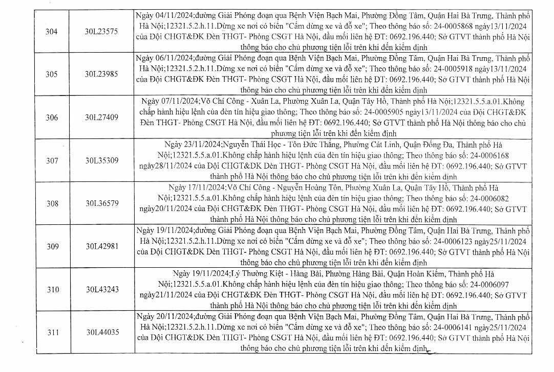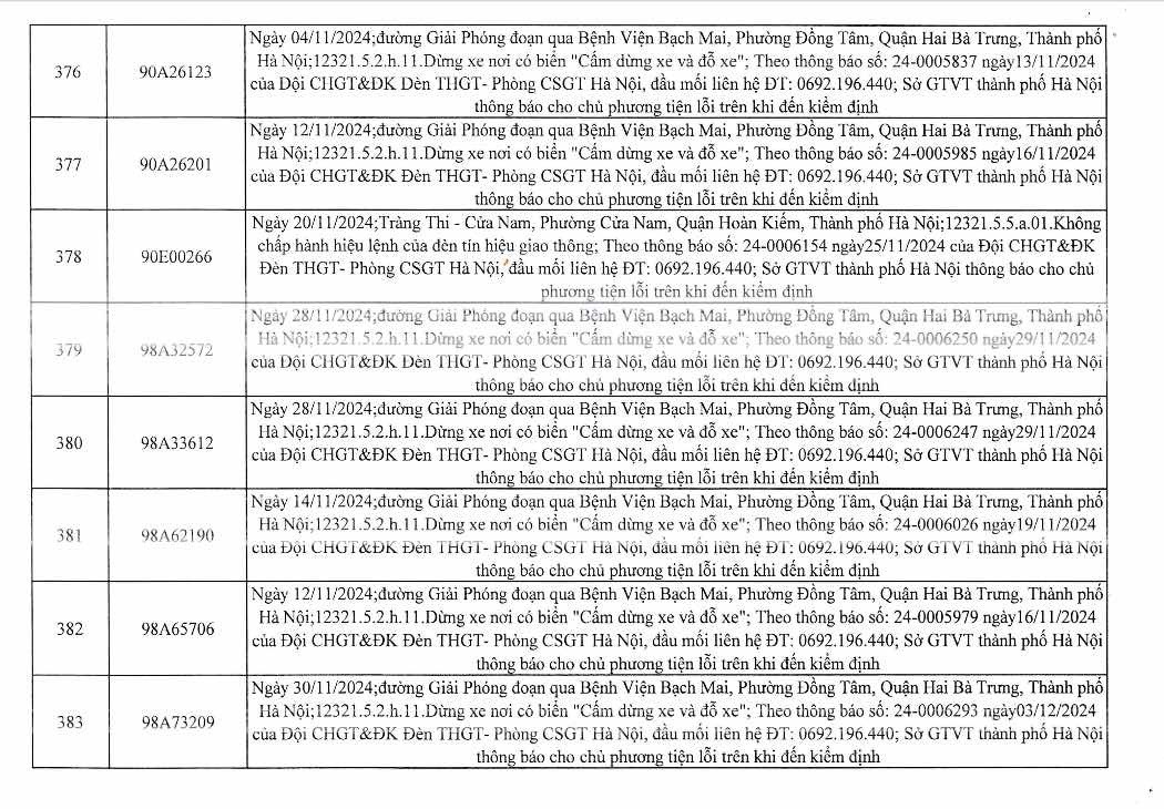 | Danh sách xe phạt nguội từ Công an thành phố Hà Nội cung cấp |