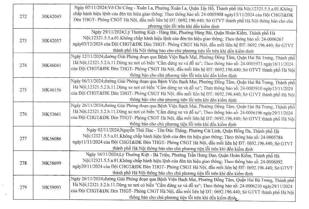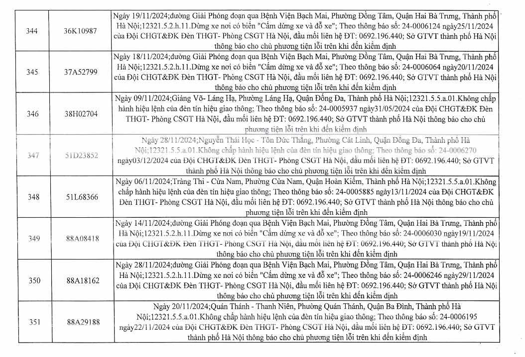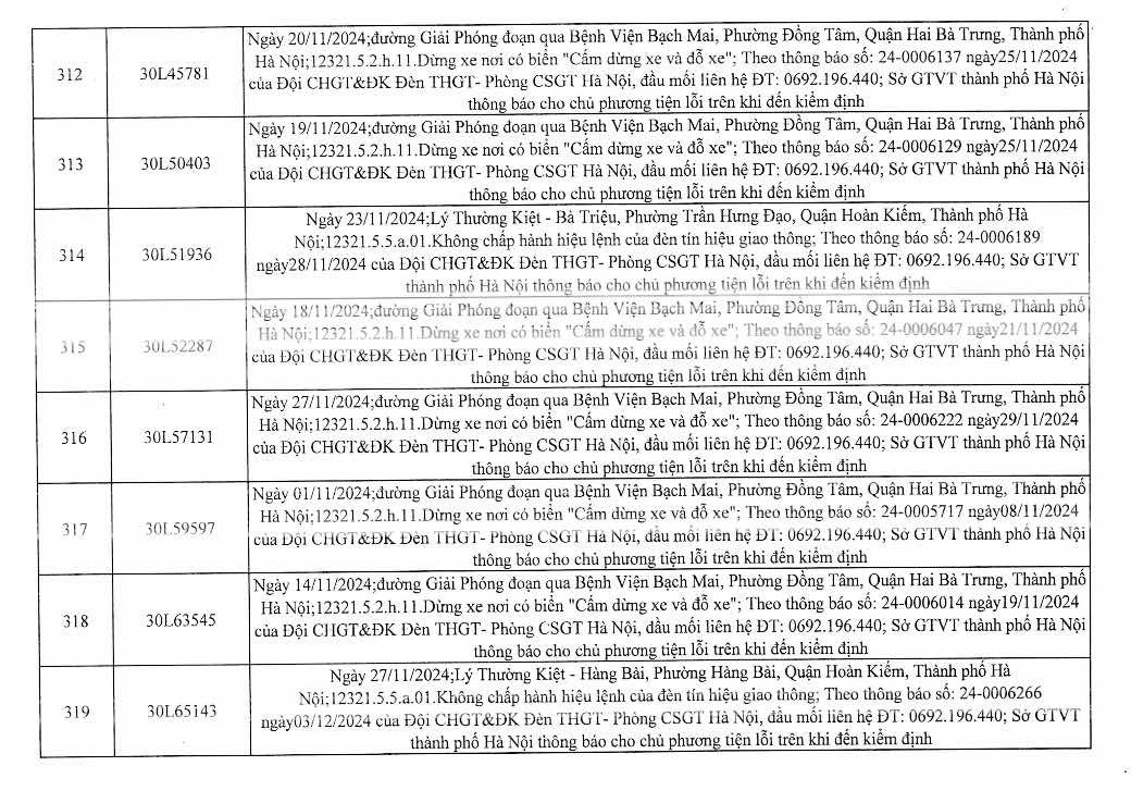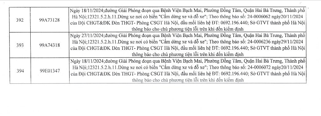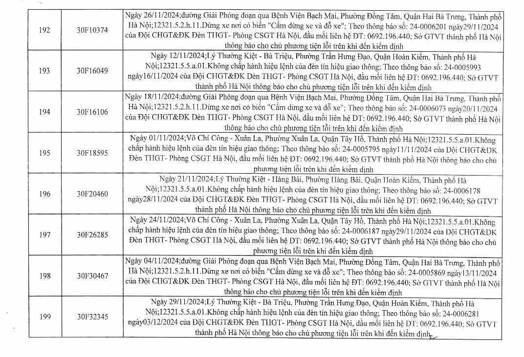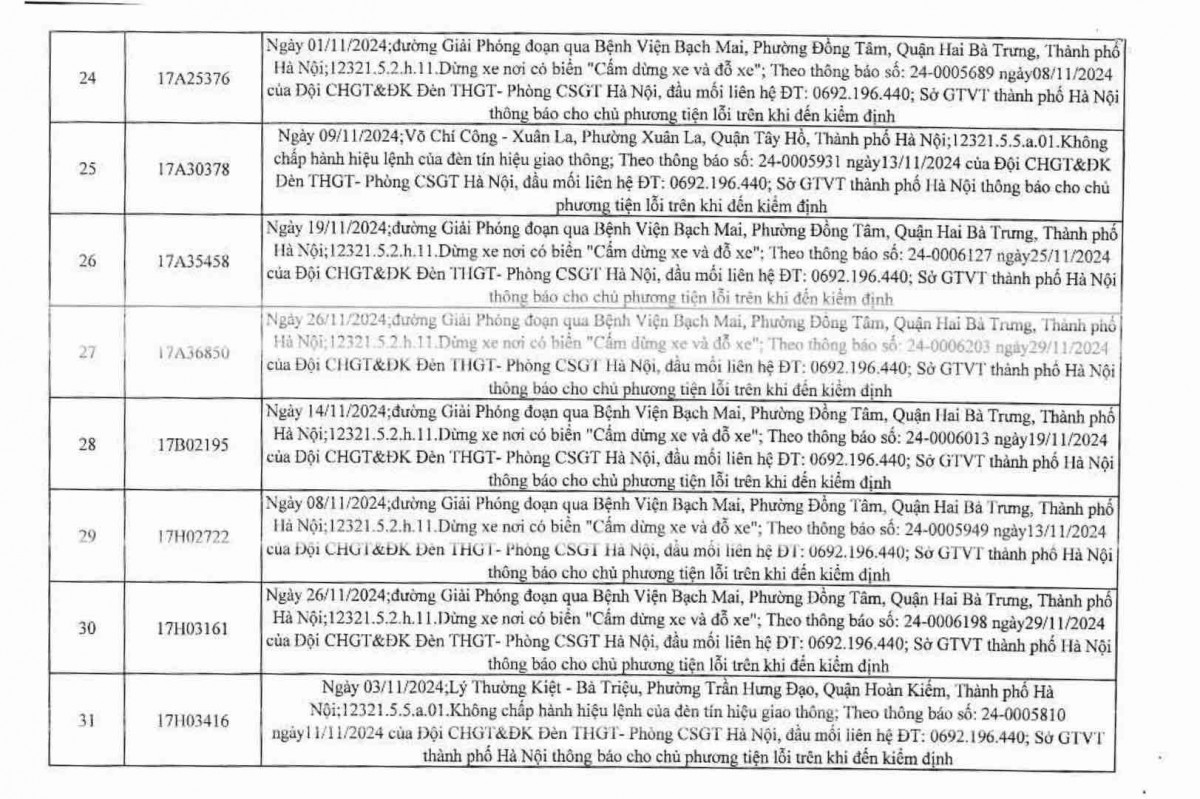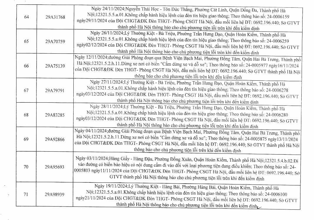 | Danh sách xe phạt nguội từ Công an thành phố Hà Nội cung cấp |