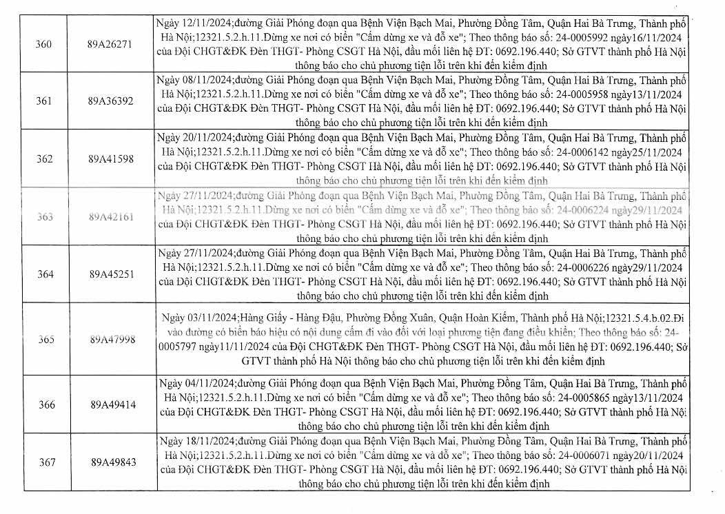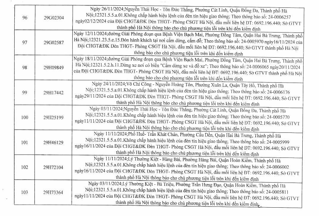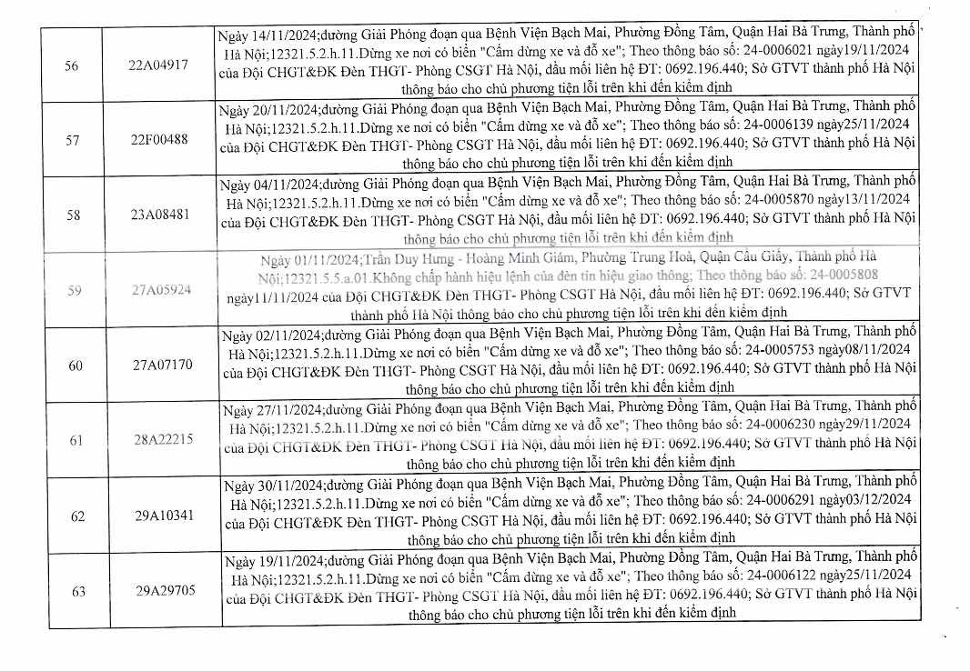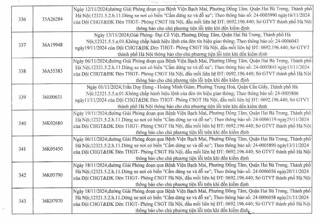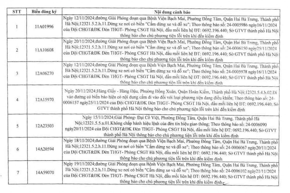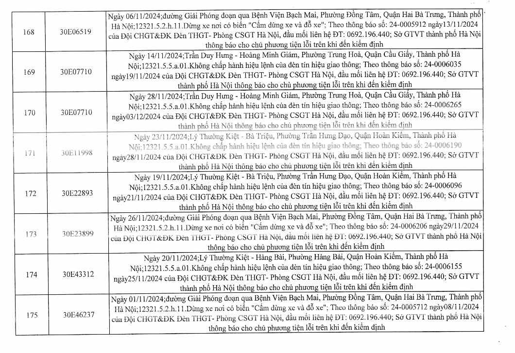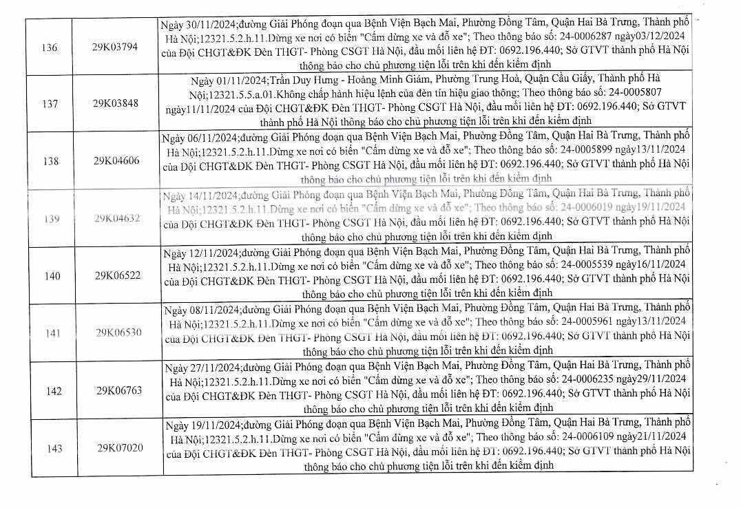 | Danh sách xe phạt nguội từ Công an thành phố Hà Nội cung cấp |