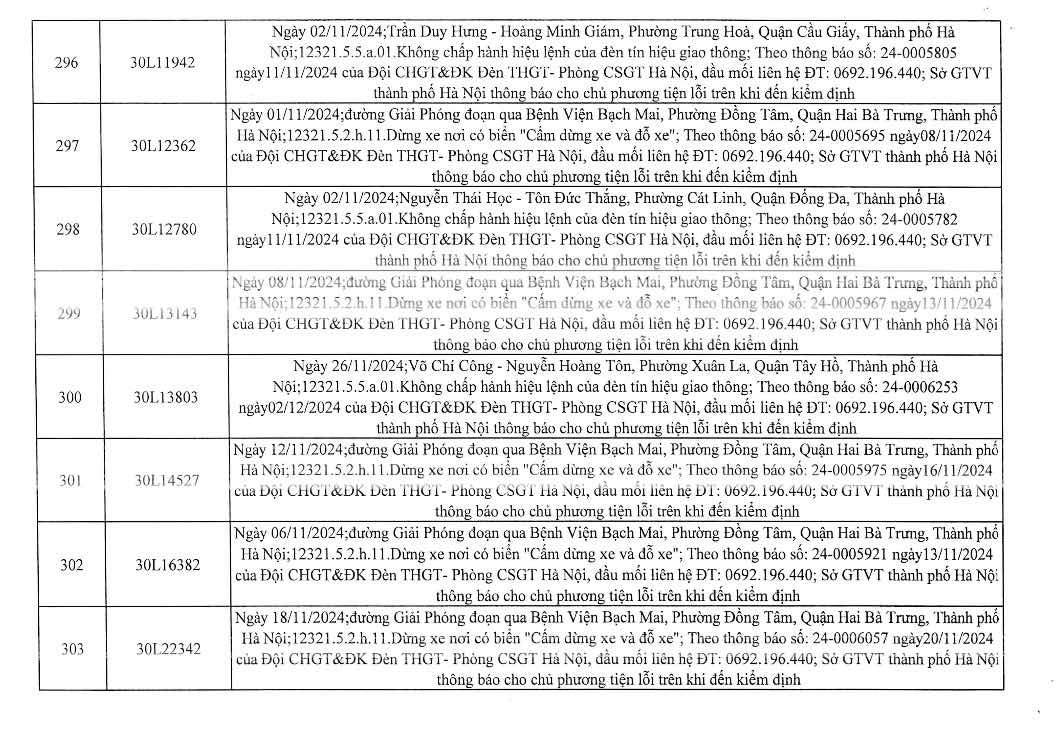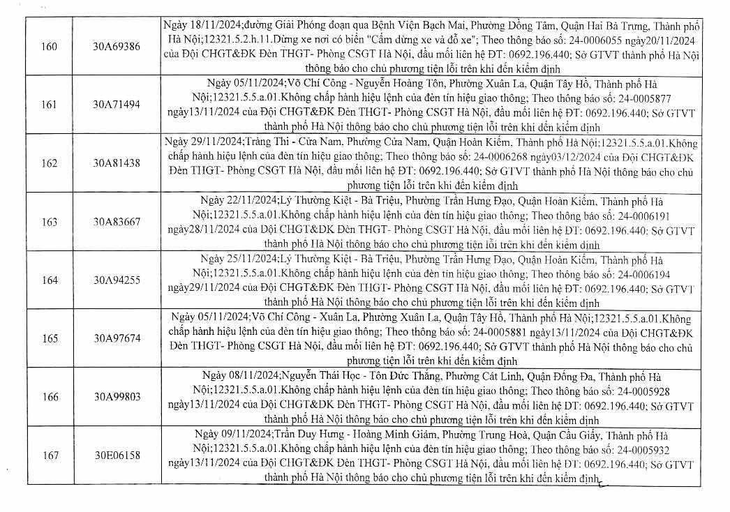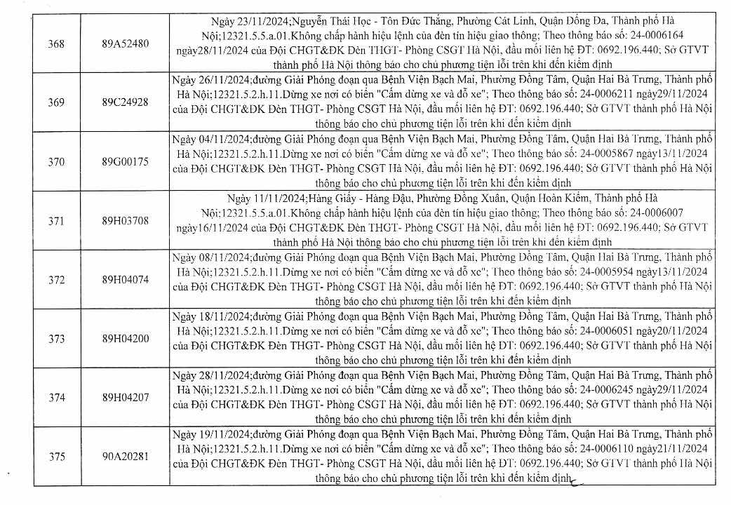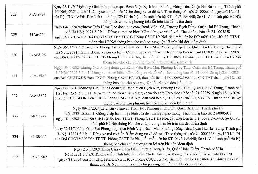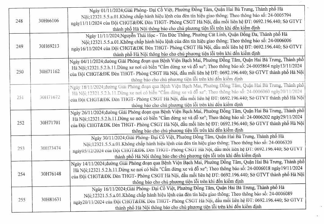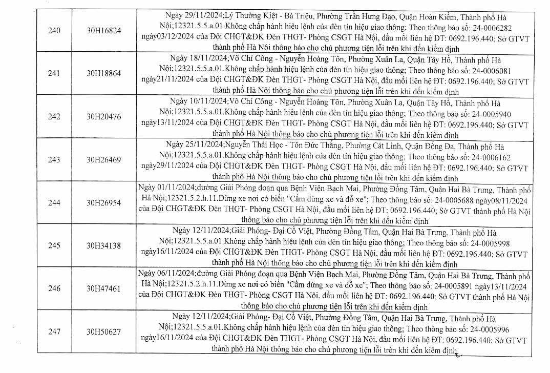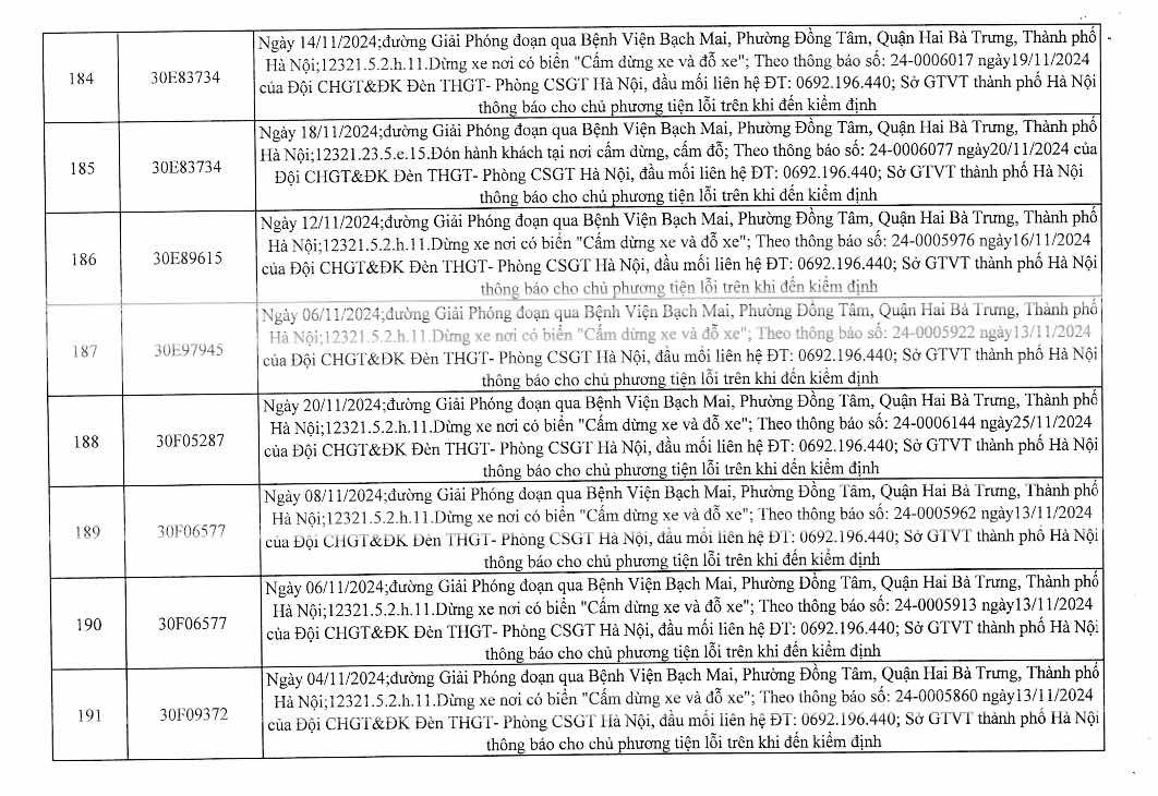 | Danh sách xe phạt nguội từ Công an thành phố Hà Nội cung cấp |