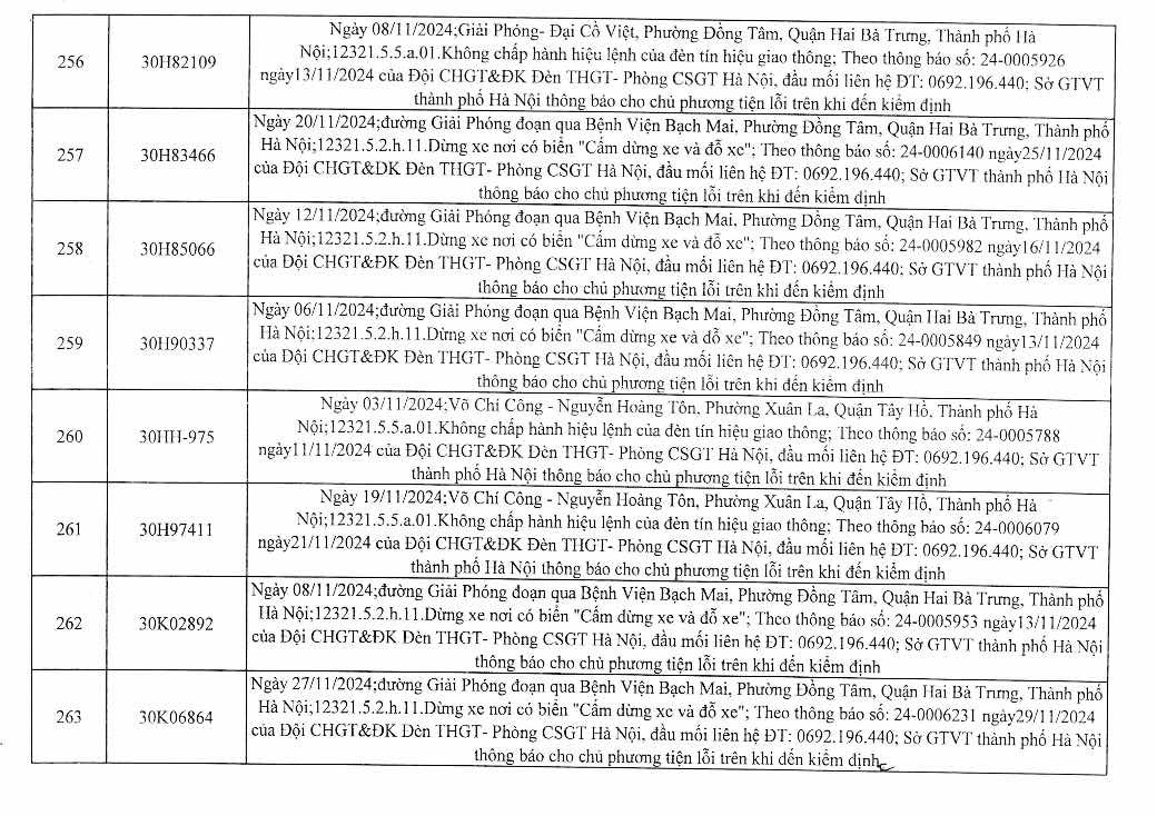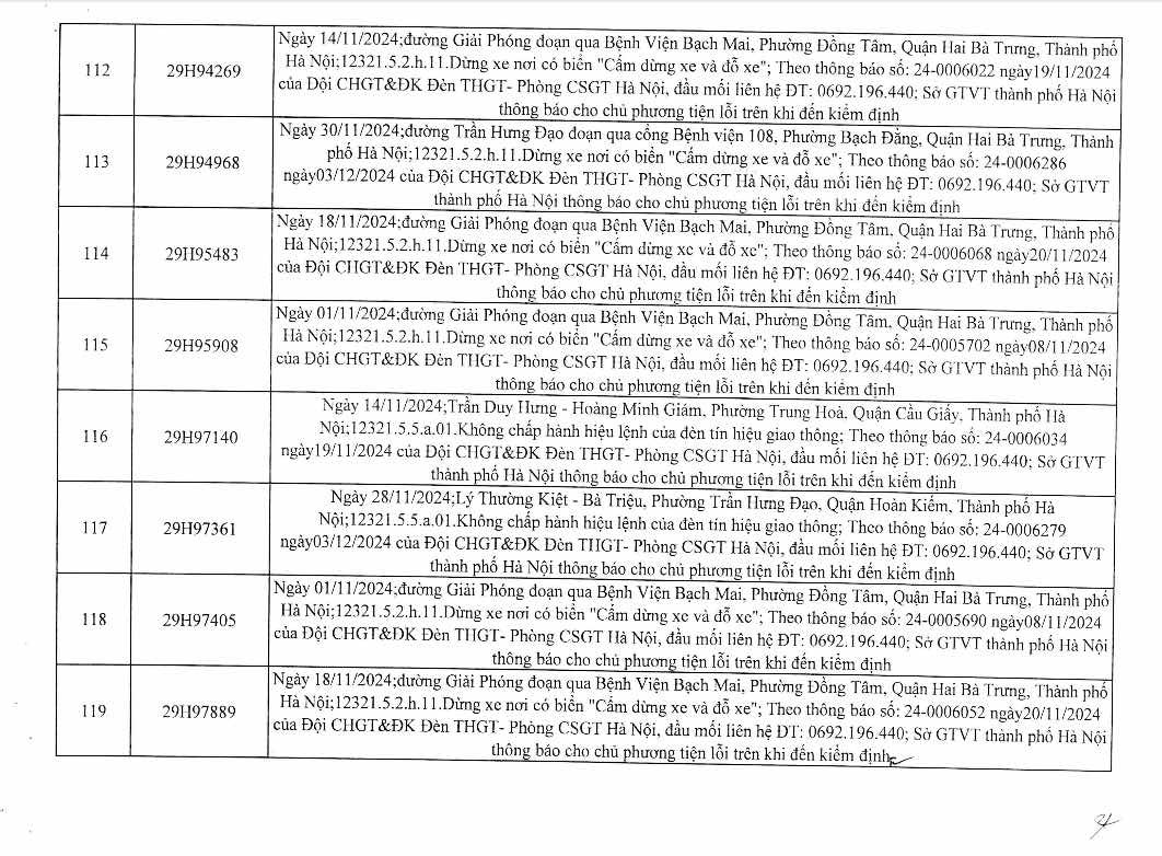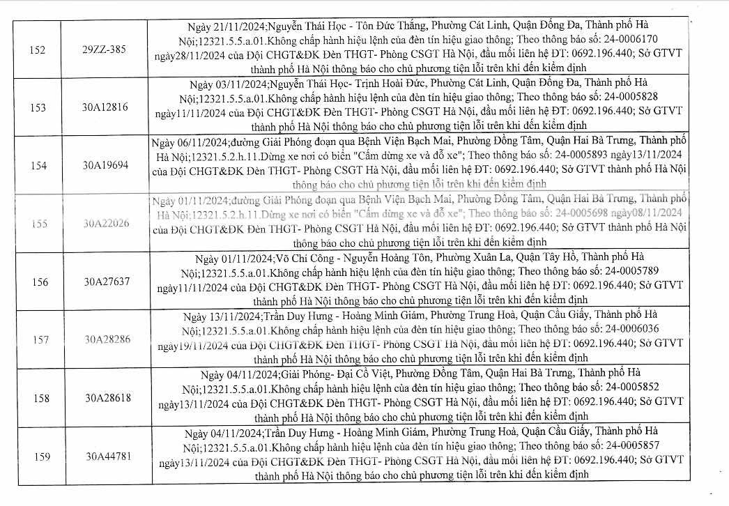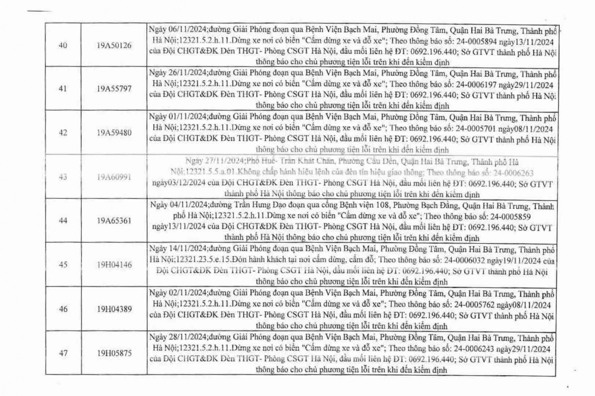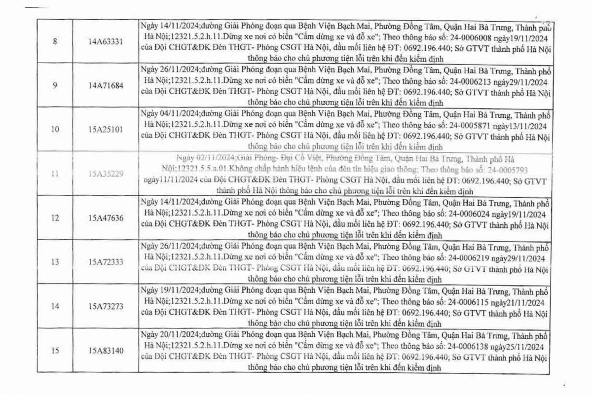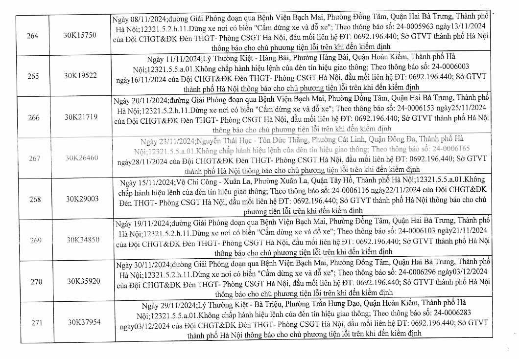 | Danh sách xe phạt nguội từ Công an thành phố Hà Nội cung cấp |