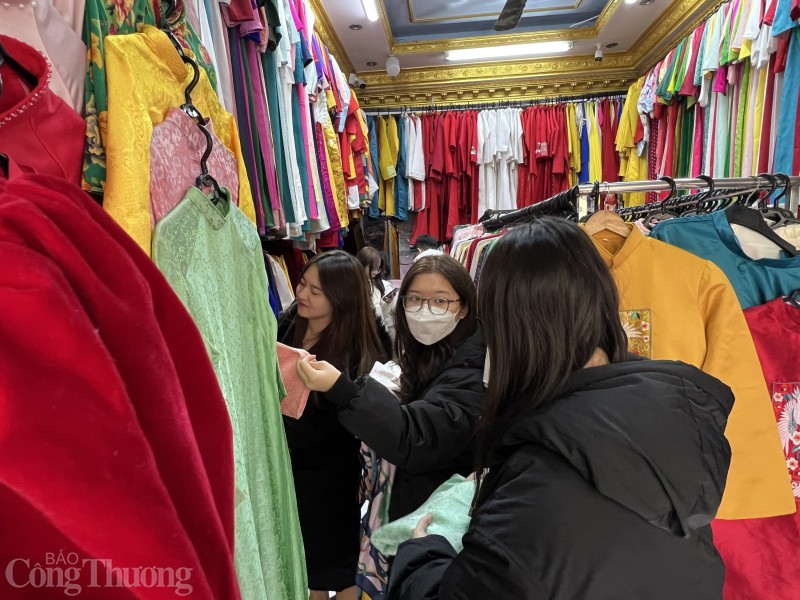 Ghi nhận của phóng viên Báo Công Thương tại một số cửa hàng cho thuê áo dài ở quận Ba Đình, quận Cầu Giấy, quận Bắc Từ Liêm (Hà Nội) những ngày qua, khách hàng chen chúc thử đồ, thậm chí tranh giành nhau các mẫu mới. Các nhân viên ở đây phải làm việc không ngơi nghỉ, giúp khách thử đồ và giao nhận áo dài.