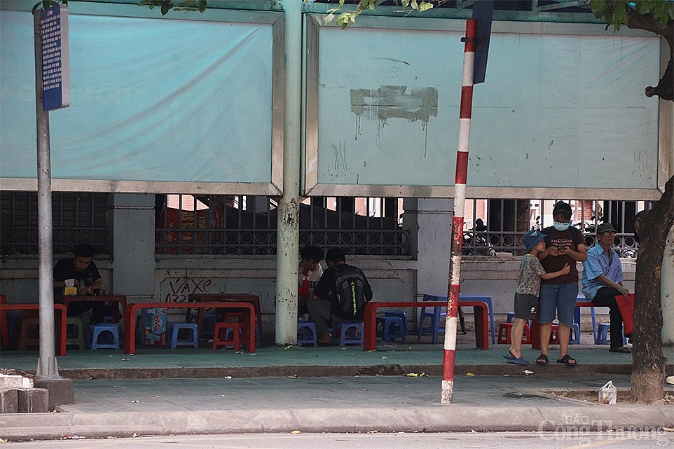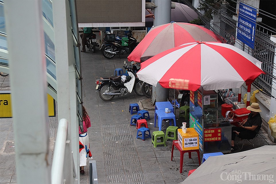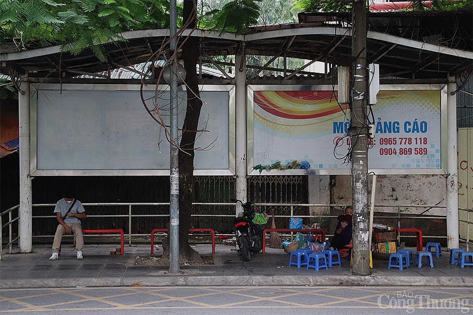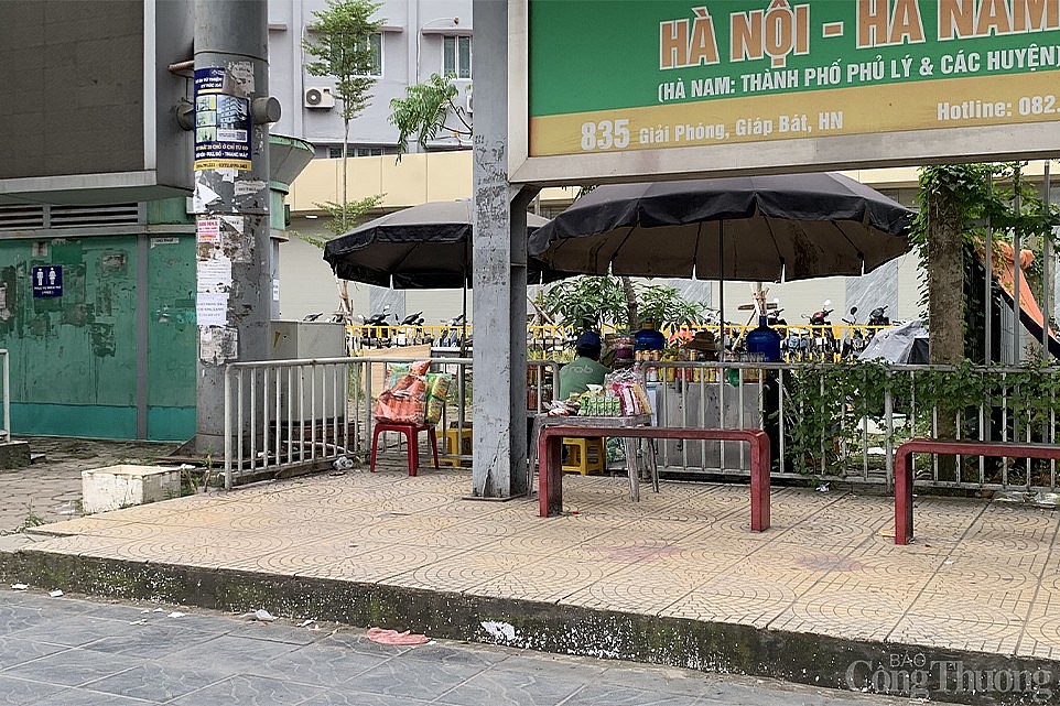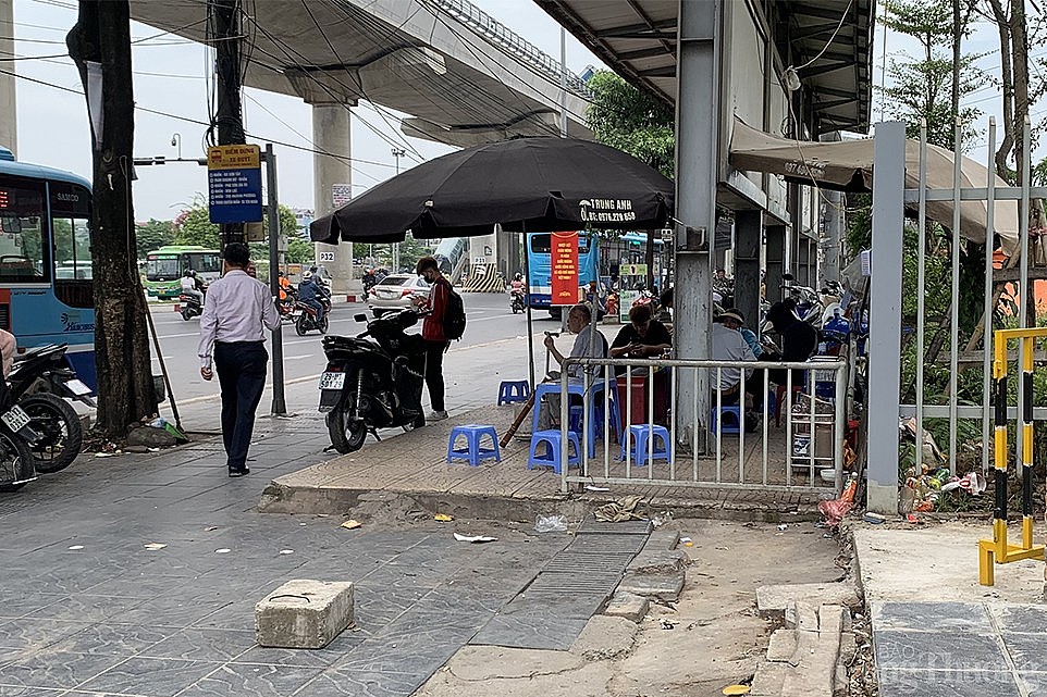 | Ghi nhận tại chân ga Cầu Giấy, nhiều nhà chờ cũng bị chiếm dụng thành hàng quán, địa điểm kinh doanh. |