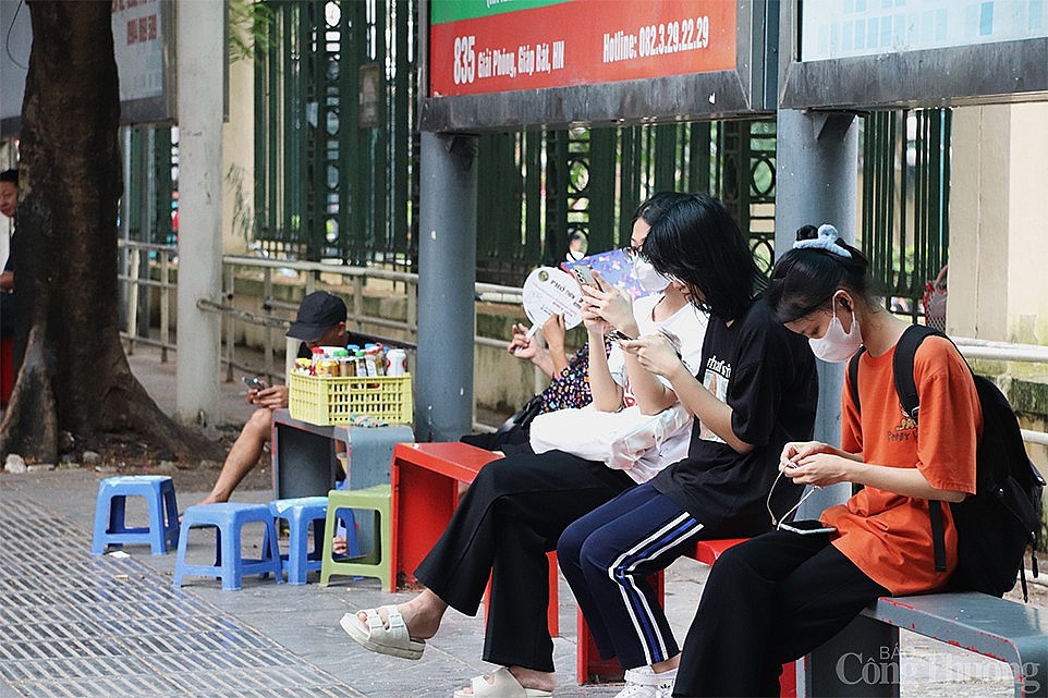 | Bạn Nguyễn Thị Hoa (Cầu Giấy, Hà Nội) cho biết: "Ngày nào em cũng phải ra điểm chờ xe buýt đối diện Đại học Giao thông Vận tải để bắt xe về nhà. Khu vực nhà chờ tại đây bị người dân chiếm dụng thành hàng quán bán hàng, bàn ghế xếp hàng dài chiếm gần hết khu vực nhà chờ". |