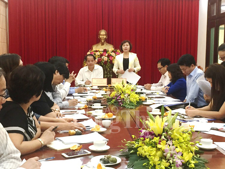 | Thứ trưởng Bộ Công Thương Hồ Thị Kim Thoa (phải) và ông Nguyễn Doãn Toản - Phó Chủ tịch UBND TP Hà Nội (trái) chủ trì buổi làm việc |