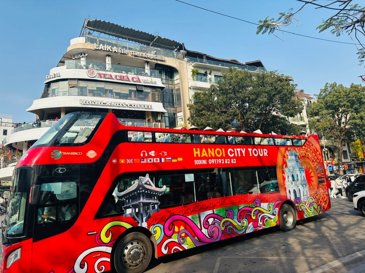 | Xe buýt là lựa chọn của nhiều du khách đến với Hà Nội trong dịp Tết Nguyên đán. Ảnh: ĐH |