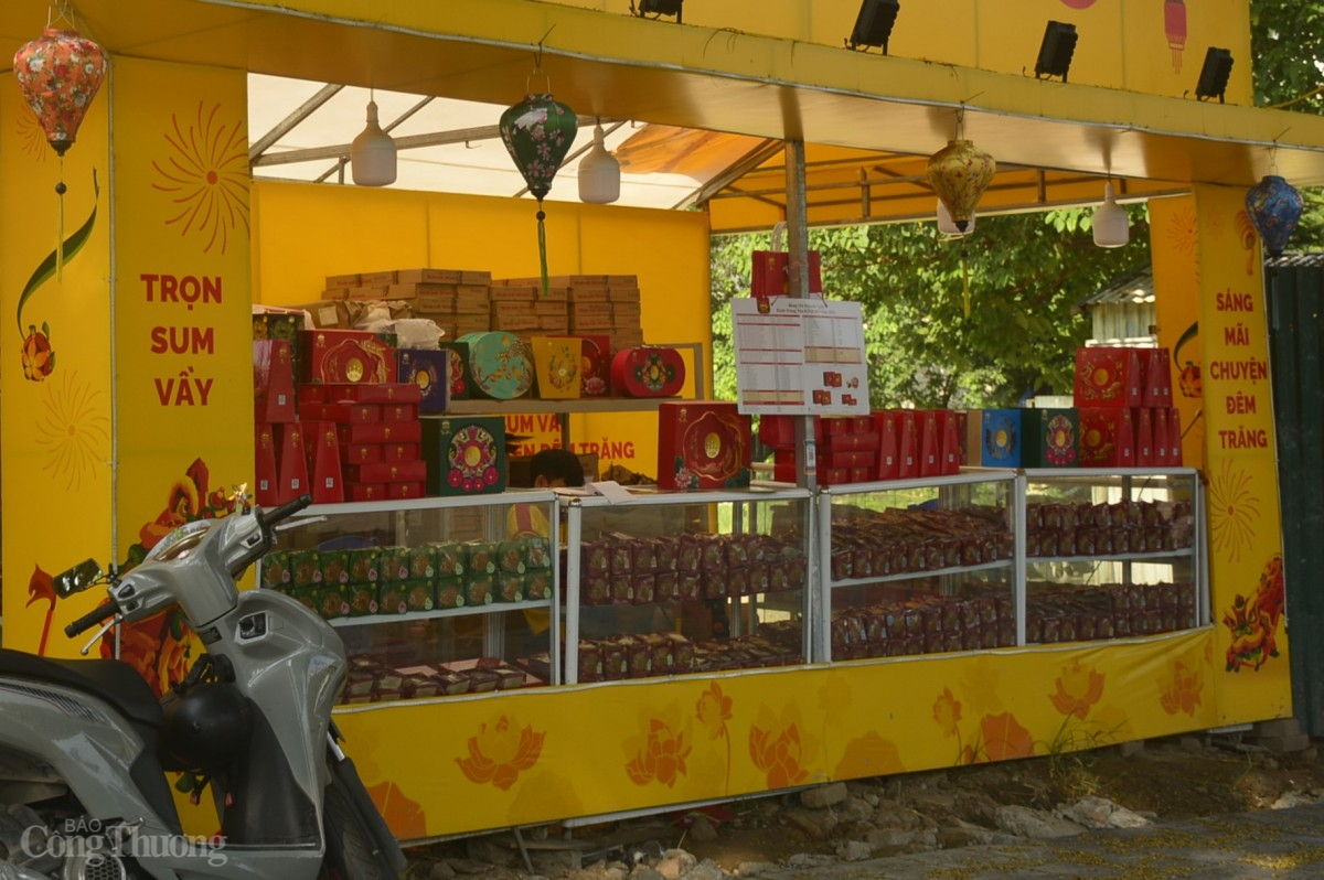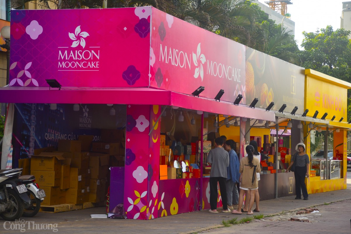 | Trước cửa tòa nhà CT3 trên đường Phạm Hùng, có tới 6 gian hàng bánh trung thu thuộc các nhãn hiệu Kinh Đô, Madame Hương, Thu Hương, Long Đình, Hữu Nghị, Maison. |