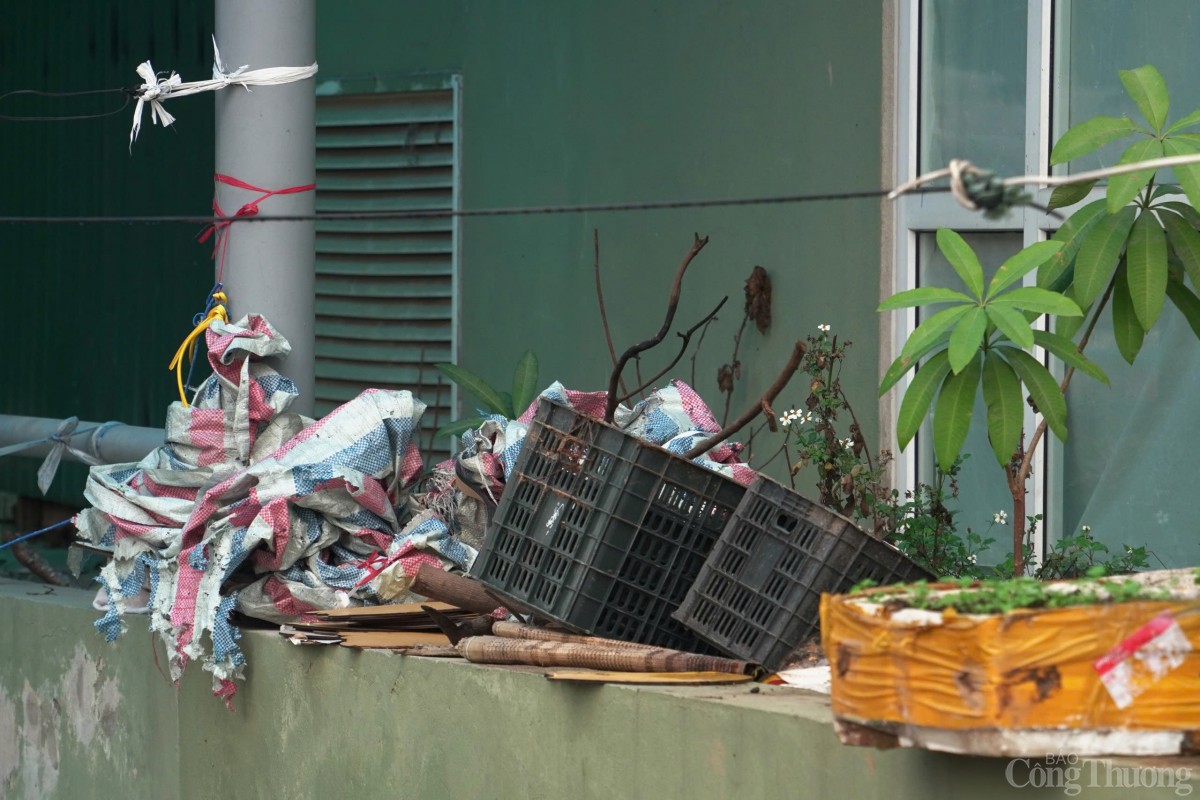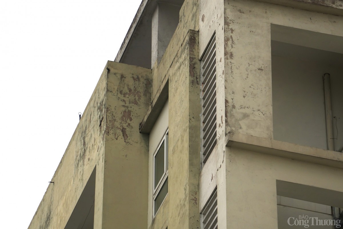 | Nhiều mảng tường của một số tòa nhà có dấu hiệu bóc tróc, xuống cấp. |