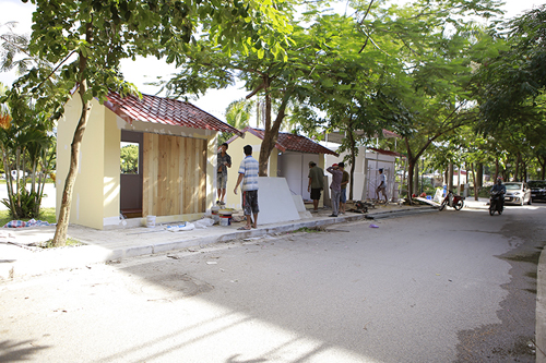 | Phố Trịnh Công Sơn đang được xây dựng các ki-ốt |
