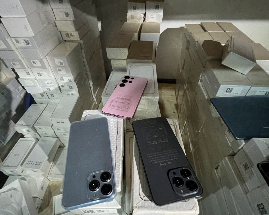 Hàng hóa phát hiện trong kho là thiết bị điện thoại là iphone, ipad mang thương hiệu của Apple cùng các thương hiệu khác có nhiều dấu hiệu vi phạm |