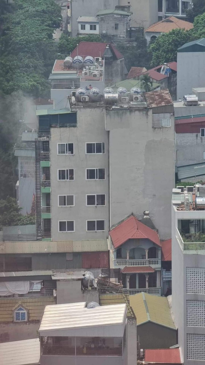 | Phát hiện cháy, nhiều người đã chạy lên tầng thượng đợi cơ quan chức năng đến giải cứu. (Ảnh bạn đọc cung cấp) |