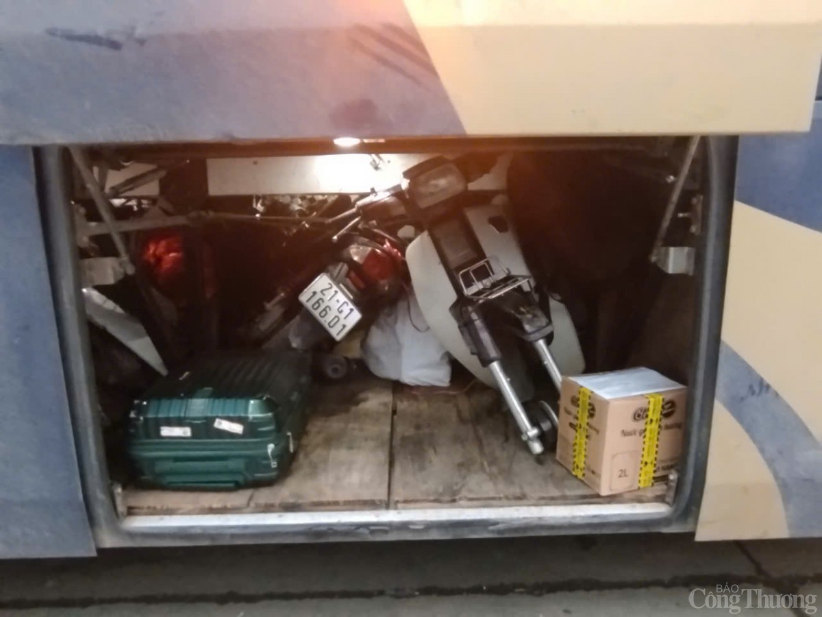 | Những chiếc xe máy được tháo bánh trước, xếp gọn trong cốp xe |