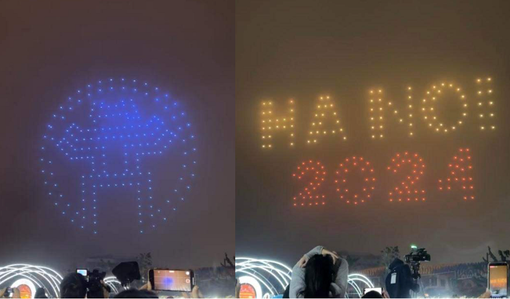 Đặc biệt, màn trình diễn ánh sáng bằng hàng trăm thiết bị bay không người lái trên bầu trời đêm Hồ Tây đã mang đến một trải nghiệm thú vị và nhiều cảm xúc đối với khán giả.