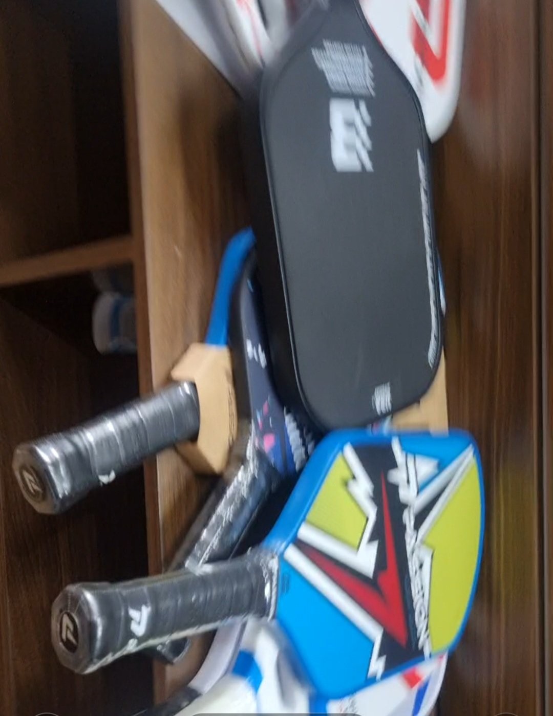 | Vợt Pickleball được bày bán tại một số cửa hàng không có tem nhãn phụ tiếng Việt (Ảnh: Đăng Khoa) |
