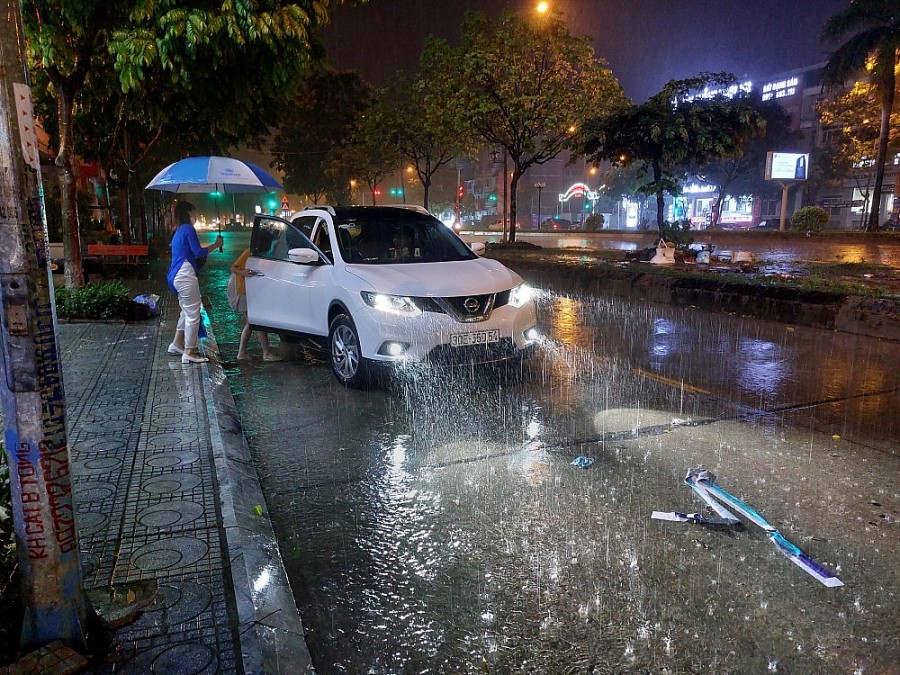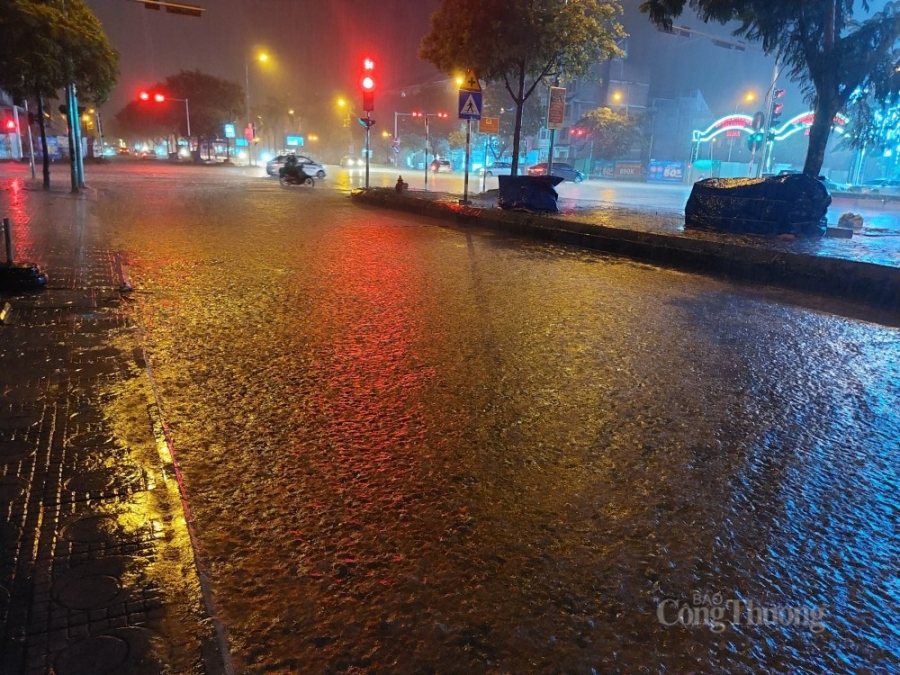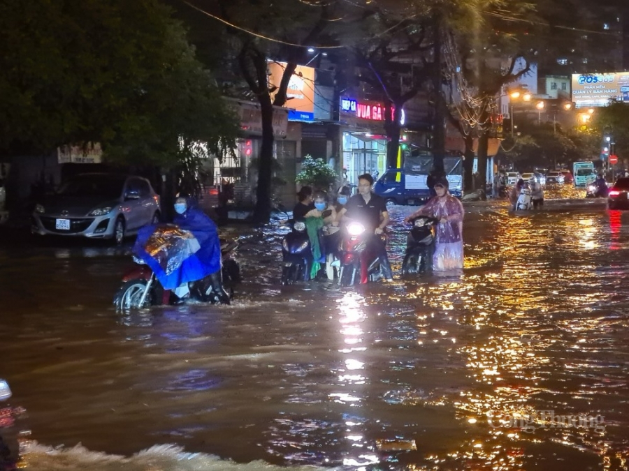 | Đến 21h30, mưa vẫn chưa có dấu hiệu ngớt |