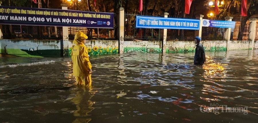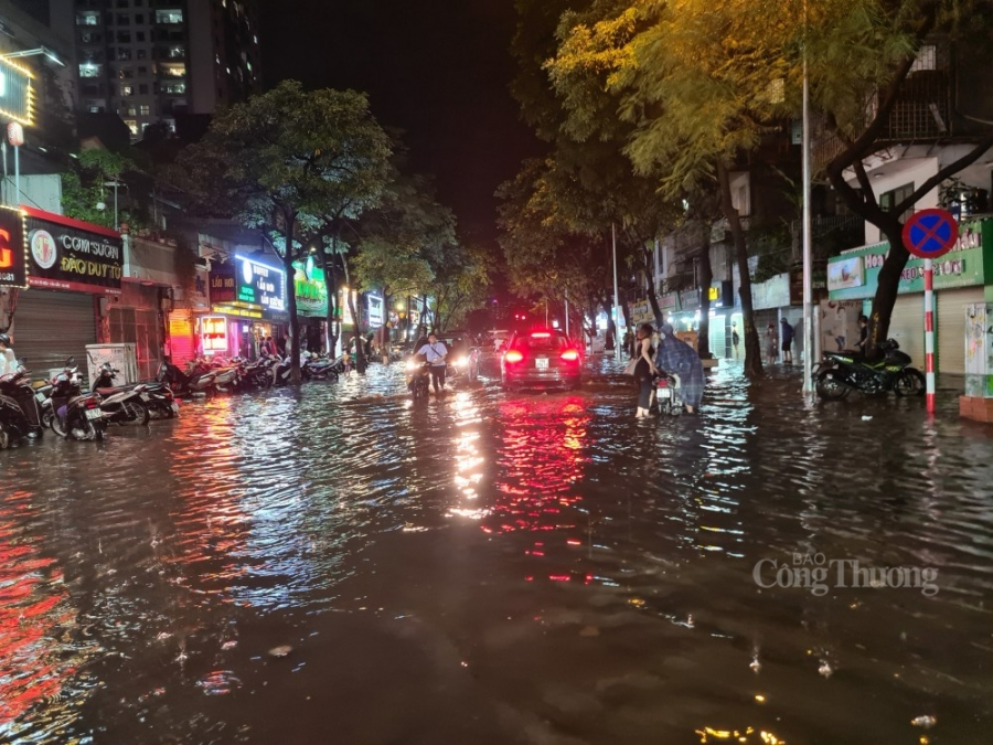 Liên tục từ gần 20h đến nay, ở nhiều khu vực của Hà Nội mưa như trút nước. Lượng mưa lớn, đổ xuống dồn dập khiến nhiều người đi đường bất ngờ. Nhiều khu phố có lượng mưa vượt 110mm, dồn dập trong thời gian dài đã dẫn đến ngập úng.