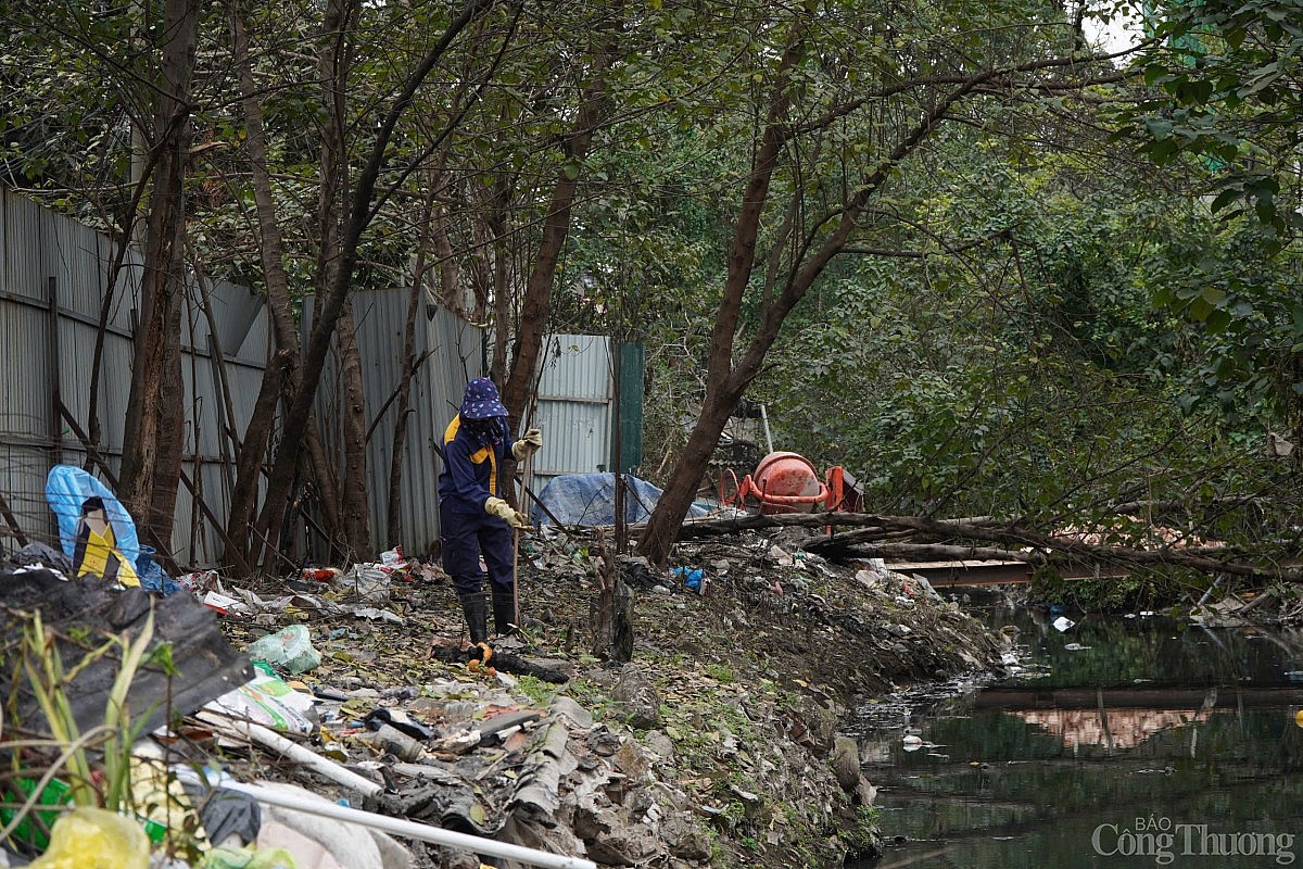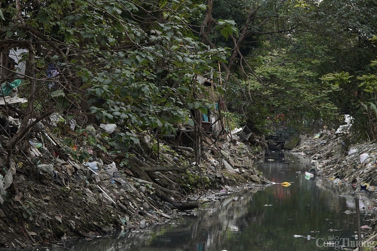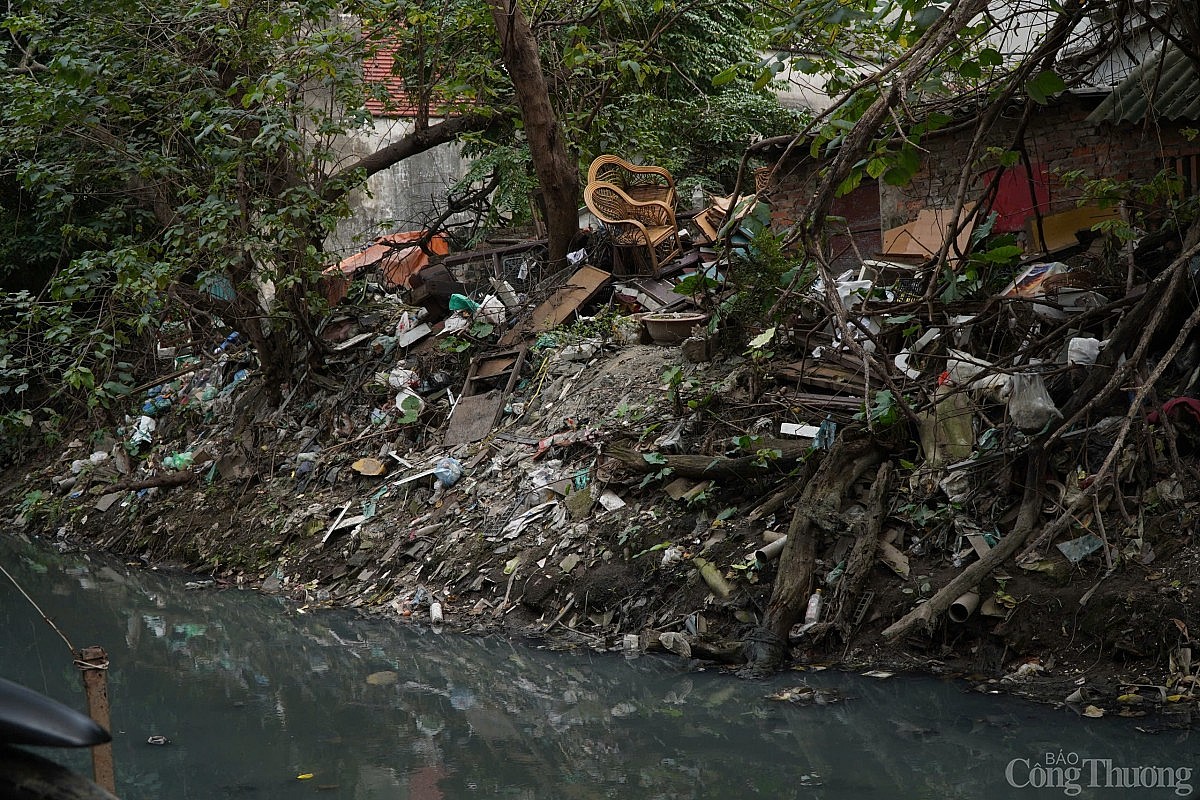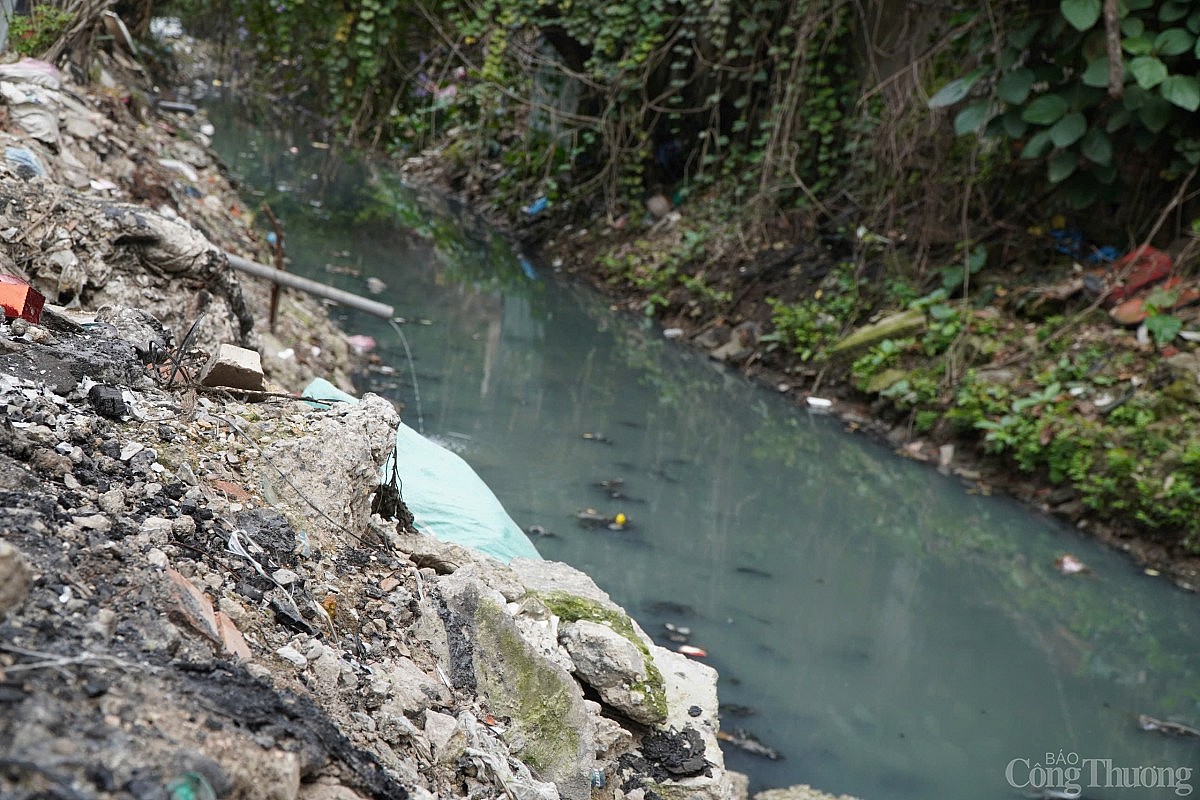 | Theo ghi nhận của phóng viên Báo Công Thương sáng ngày 8/3/2025, nước mương Kẻ Khế đen ngòm, bốc mùi khó chịu. |