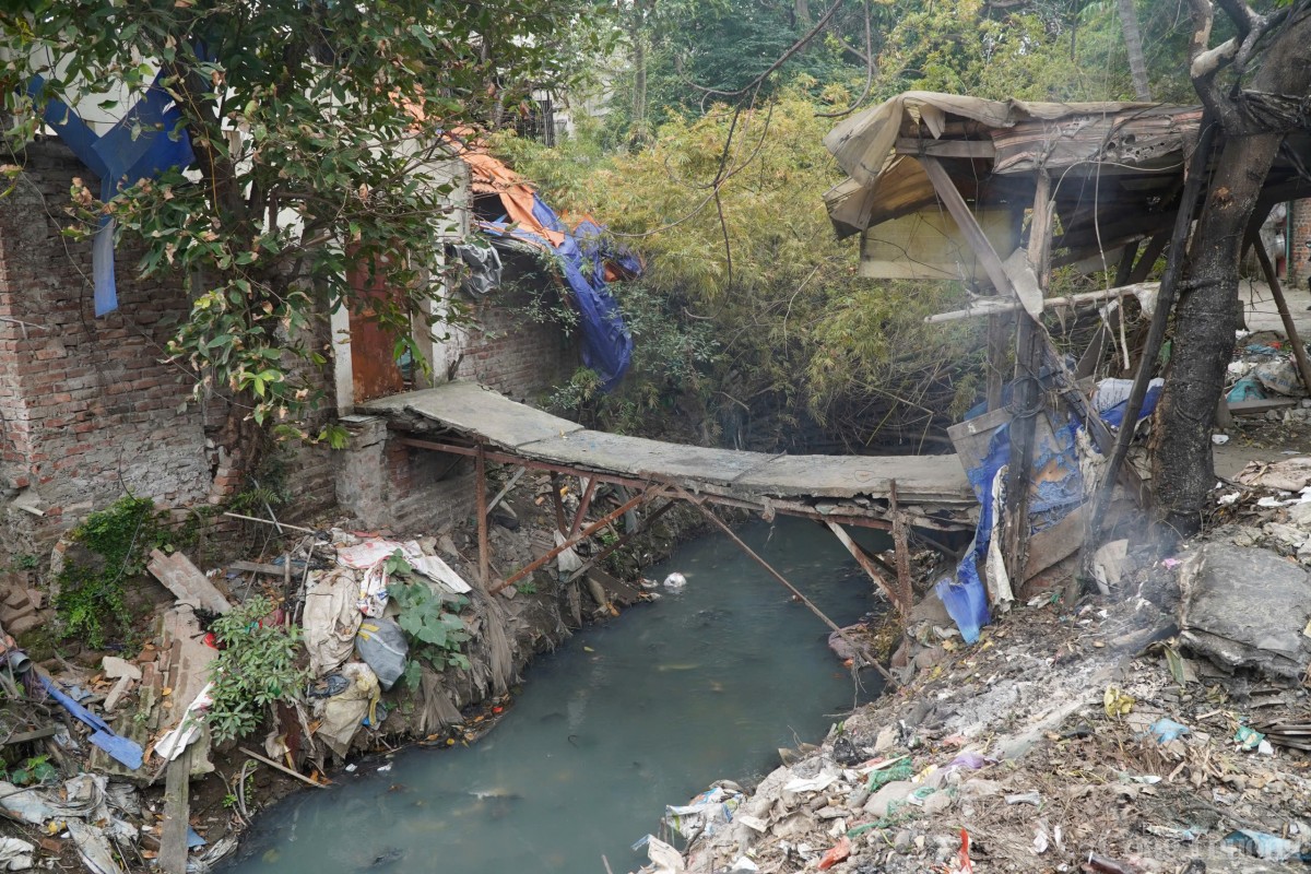 | Nhiều người dân chia sẻ lần nào đi qua đây cũng phải đeo 2-3 cái khẩu trang hoặc cố nín thở bởi con mương bốc lên mùi hôi tanh nồng nặc |