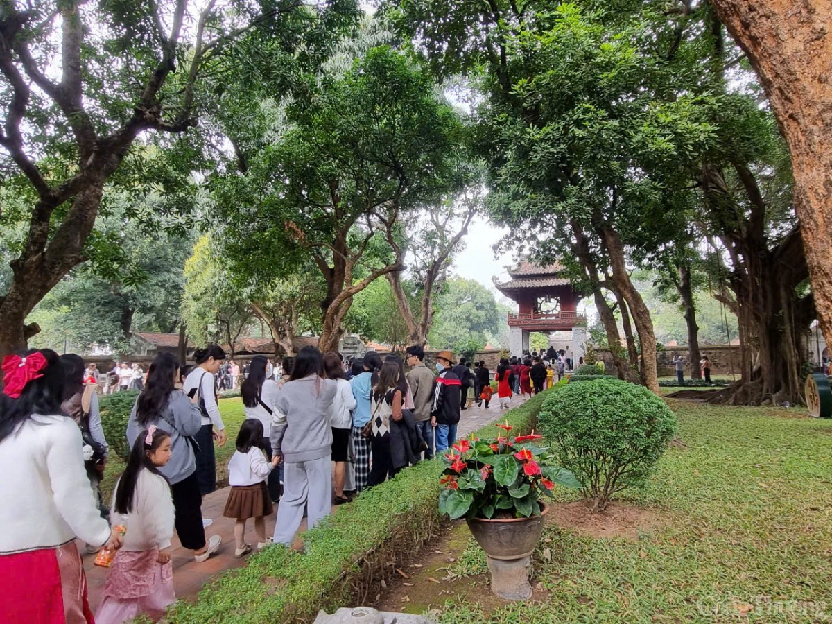 | Những ngày đầu năm, mỗi ngày, Văn Miếu Quốc Tử Giám đón hàng ngàn du khách đến vãn cảnh, dâng hương... |