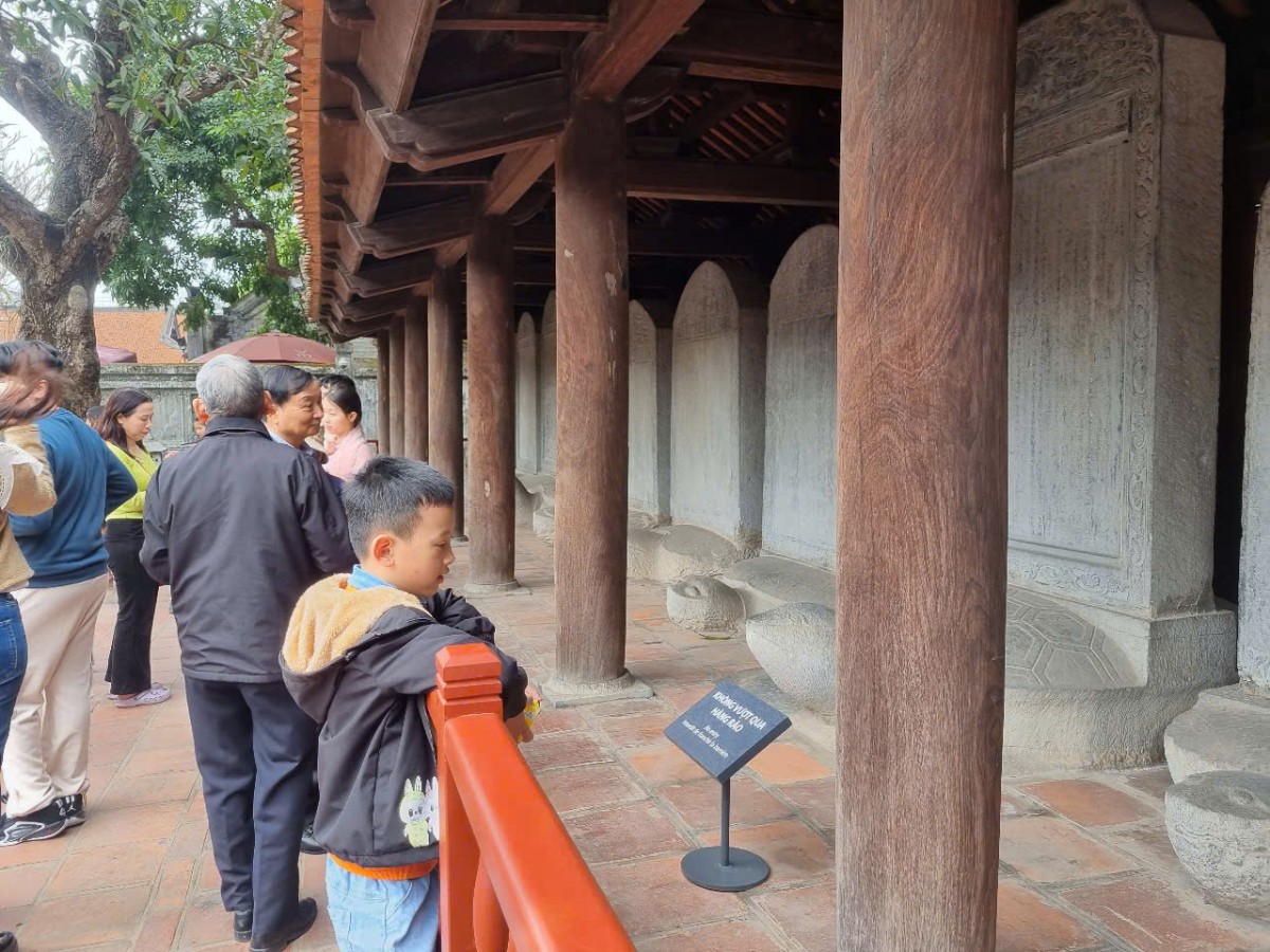 | Dịp đầu năm, nhiều gia đình đưa con trẻ đến Văn Miếu Quốc Tử Giám để ngắm cụ Rùa, xin chữ... với mong muốn con cái gặp may mắn và hanh thông trong suốt quá trình học tập. |