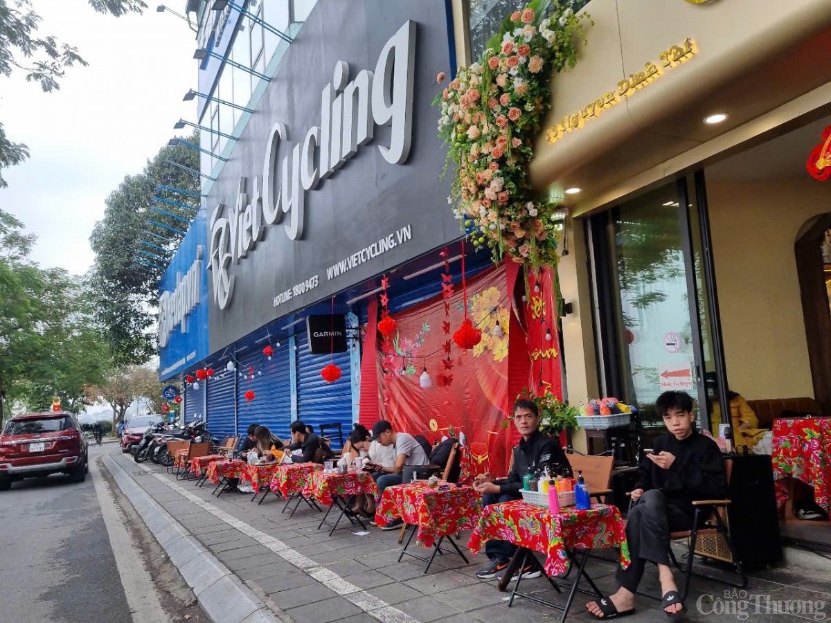 | Nhiều bạn trẻ lựa chọn các quán cà phê ven Hồ Tây là điểm gặp gỡ đầu Xuân. |