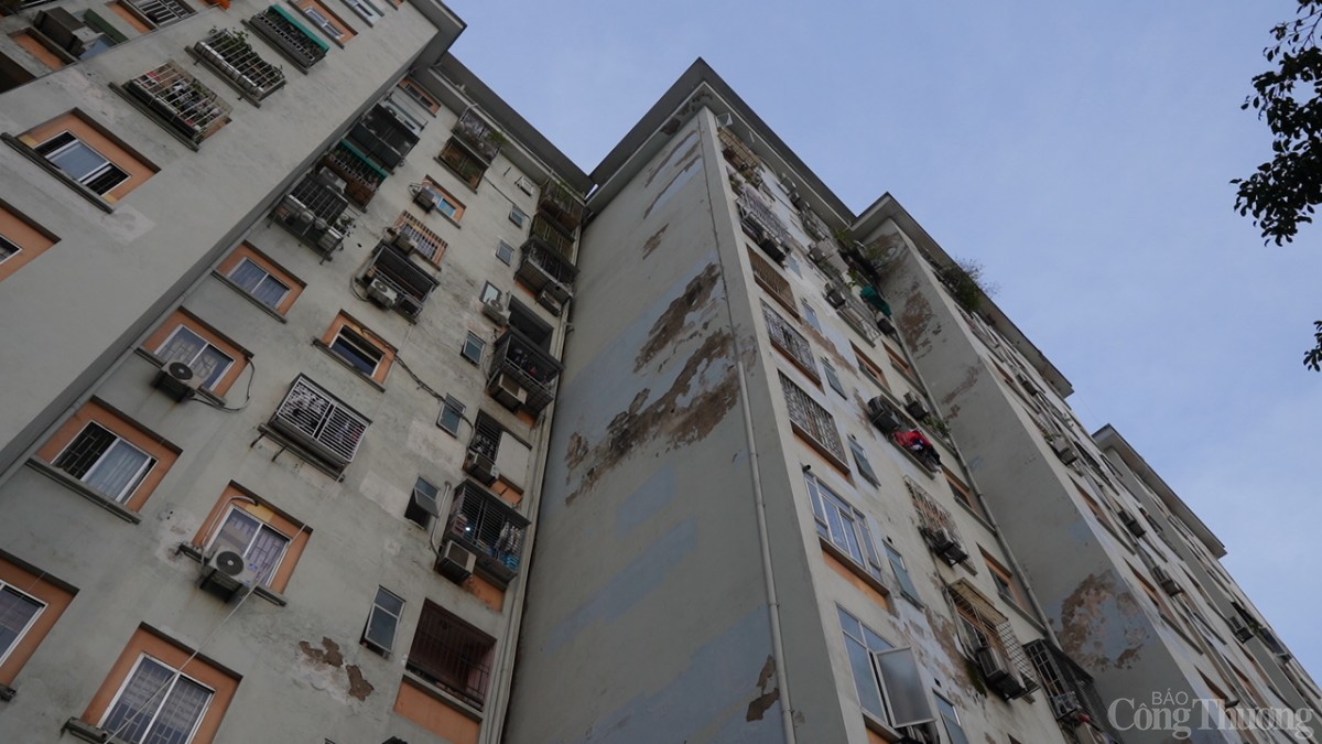 Theo ghi nhận của phóng viên, khu tái định cư Nam Trung Yên, quận Cầu Giấy, Hà Nội hiện đang xuống cấp nghiêm trọng. Tại các căn hộ, những mảng tường bong tróc, rơi rụng, ẩm mốc và rêu phong xuất hiện khắp nơi, từ phòng khách đến bếp và khu vực phơi đồ. Bà Nguyễn Thị Huyền, cư dân sống tại căn hộ ở tầng 2, tòa A6D chia sẻ, cuộc sống gặp nhiều khó khăn trong căn nhà xuống cấp suốt nhiều năm qua.