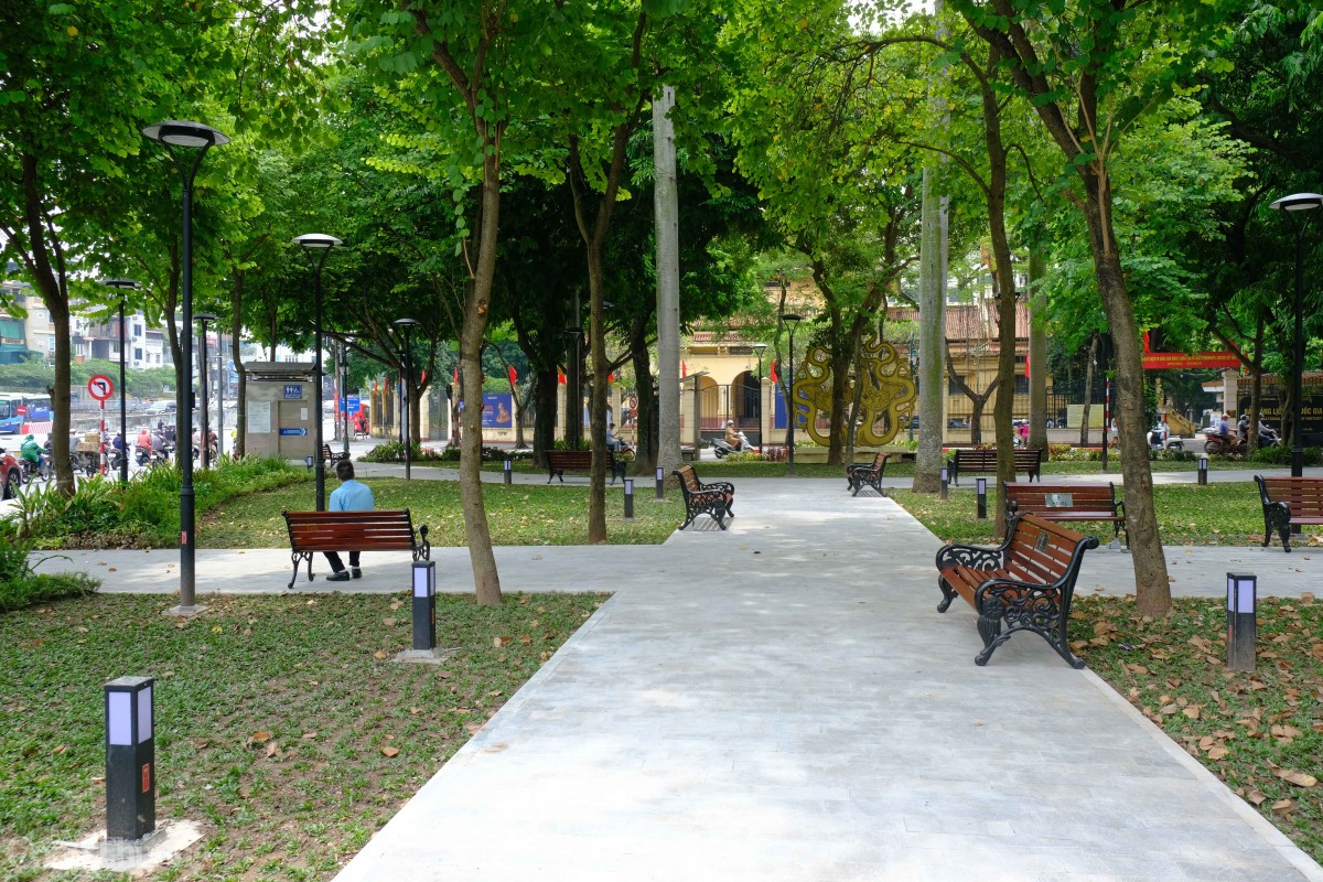 Chào mừng Kỷ niệm 79 năm Cách mạng Tháng Tám và Quốc khánh 2/9, vườn hoa Bác Cổ (quận Hoàn Kiếm, Hà Nội) đã được nâng cấp, đóng góp thêm không gian xanh cho Thủ đô. Ảnh: Trần Đình |