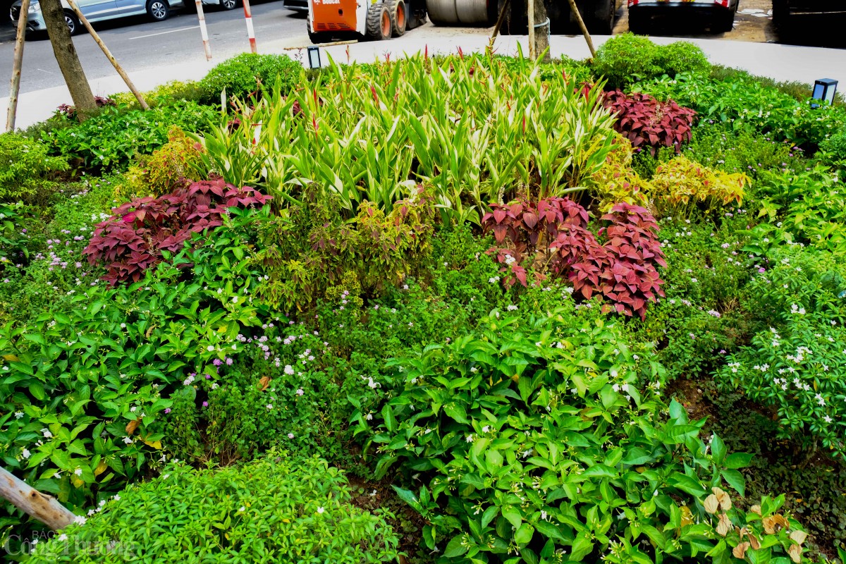 Bồn hoa lớn trồng nhiều loại cây bụi khác nhau theo ý tưởng mang rừng cây nhiệt đới vào đô thị. Ảnh: Trần Đình |