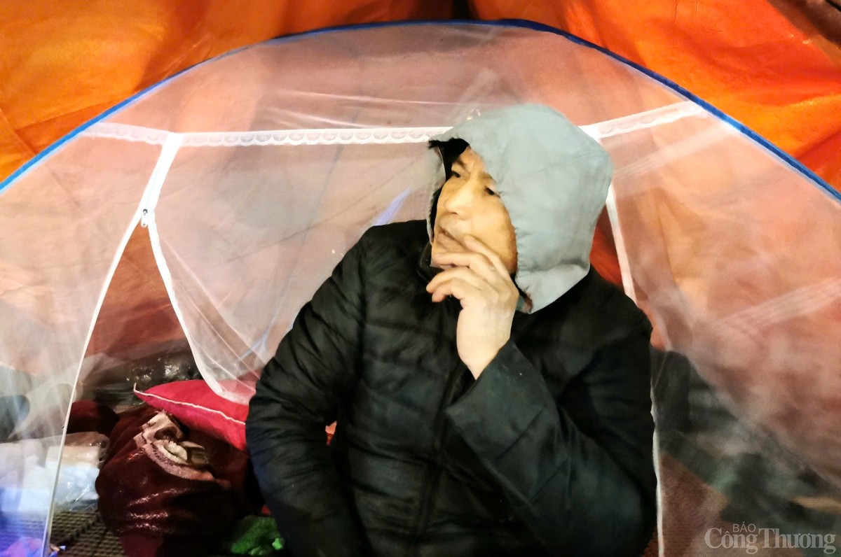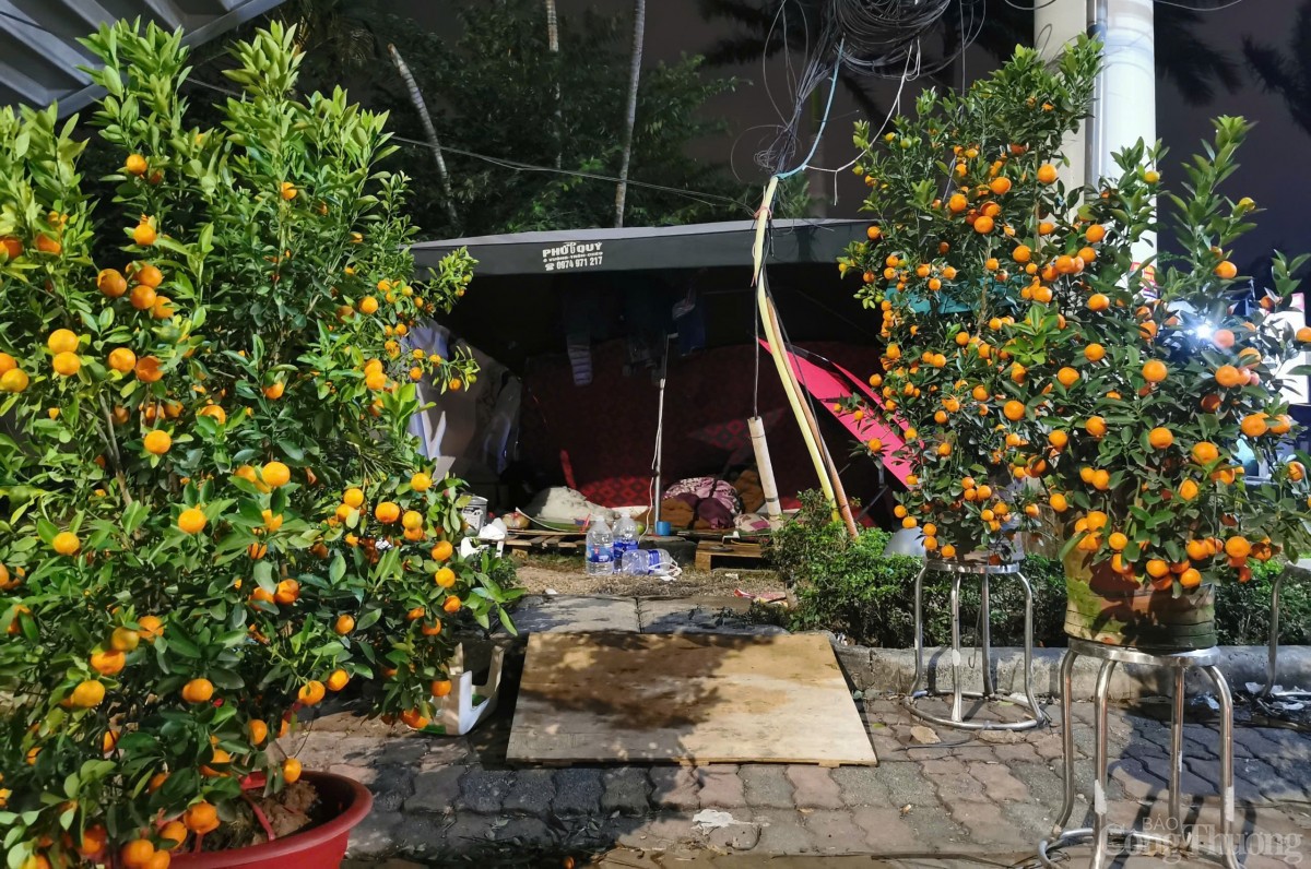 Những tấm lều dựng tạm là nơi người bán cây ngủ lại trong đêm rét buốt ở Hà Nội.