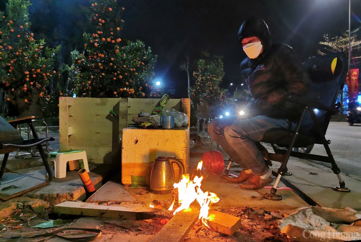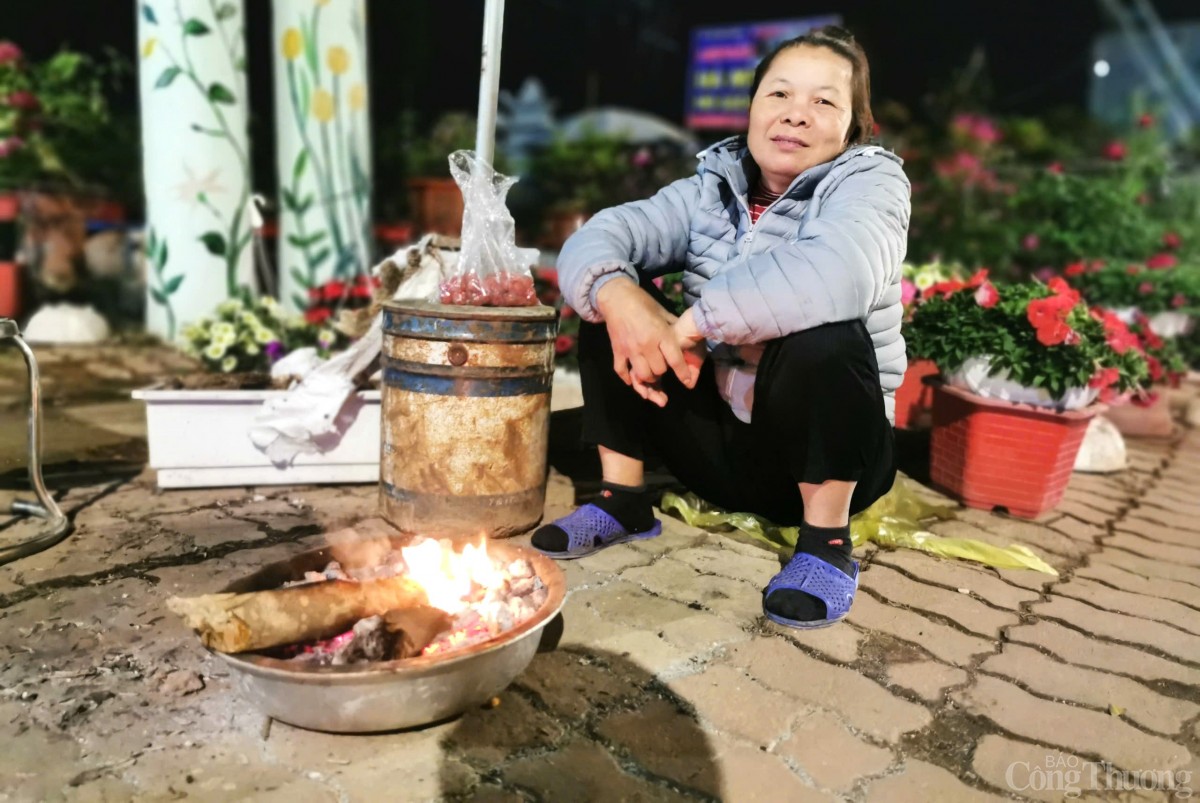 Nhiều tiểu thương bán cây Tết co ro trong giá buốt cố bám trụ lại Hà Nội trong đêm với hy vọng bán hết cây, vớt vát phần vốn đầu tư.