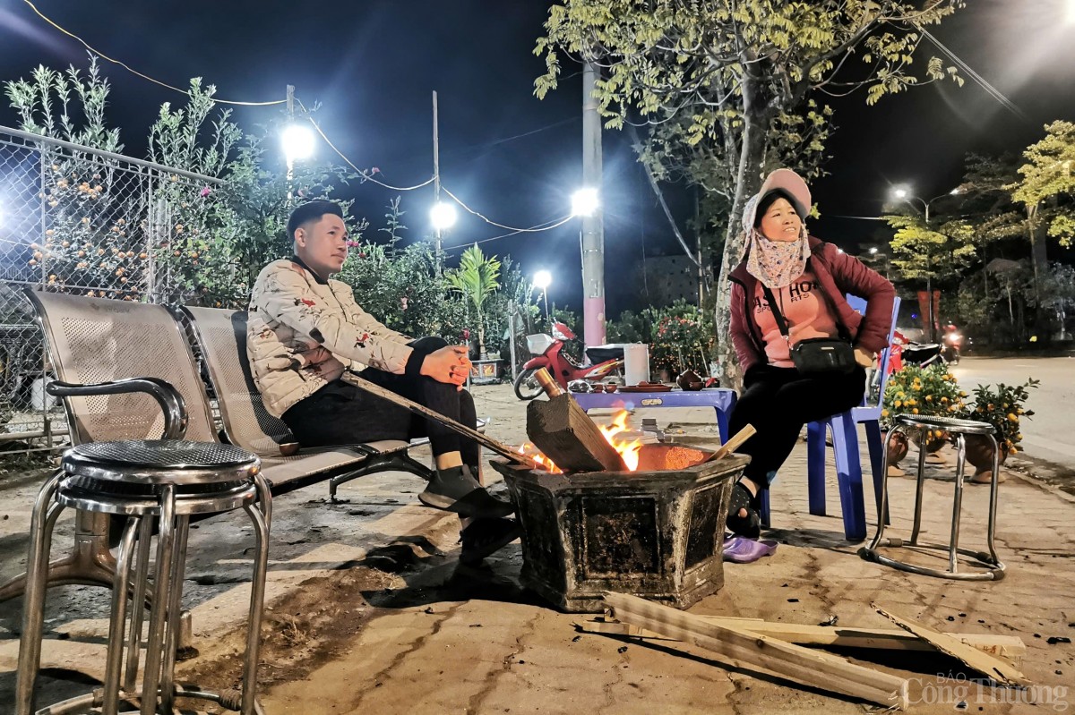 Tiểu thương cố bám trụ trong đêm lạnh như "ngồi trên lửa" khi đã xả giá hết nấc nhưng khách mua cây rất vắng.
