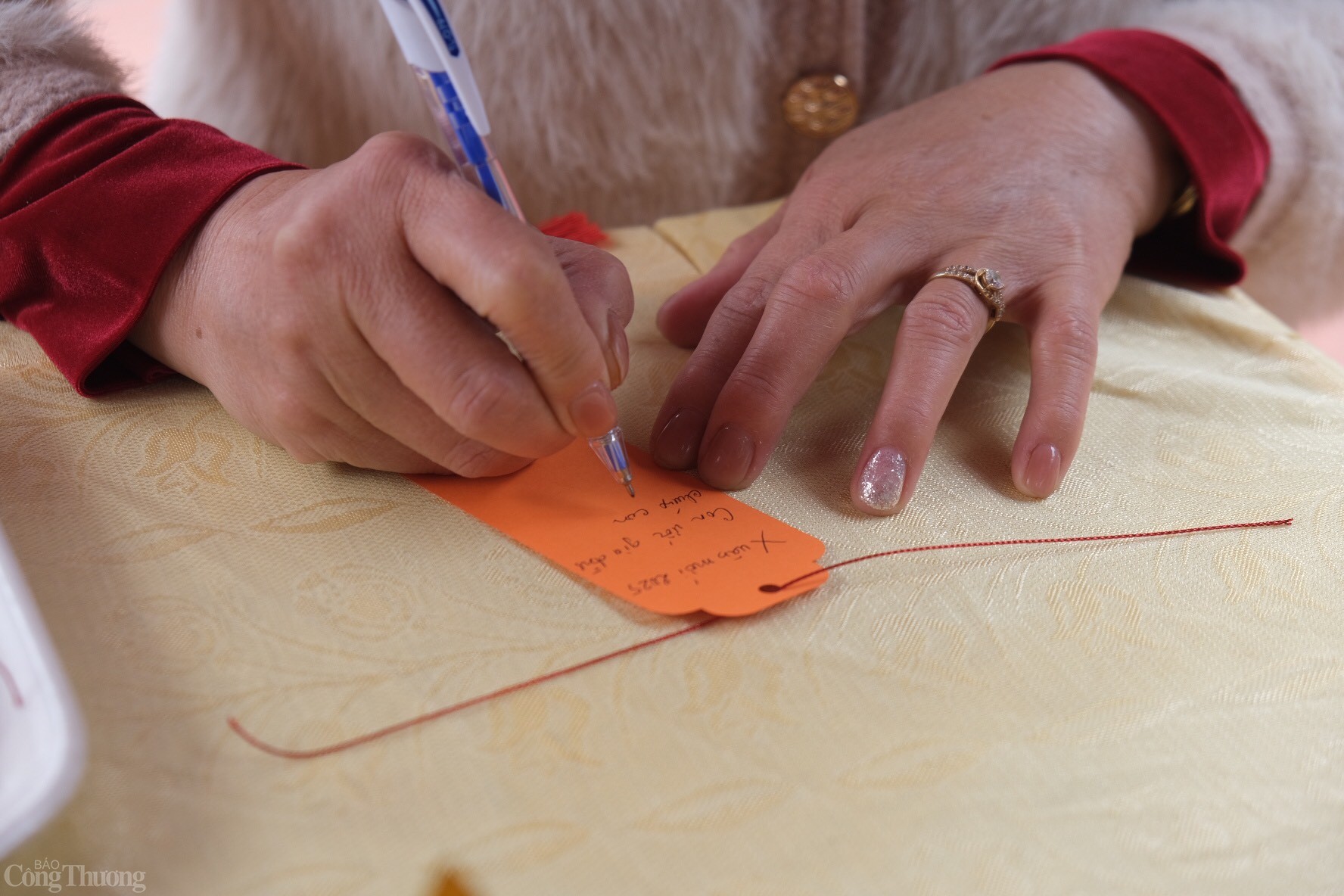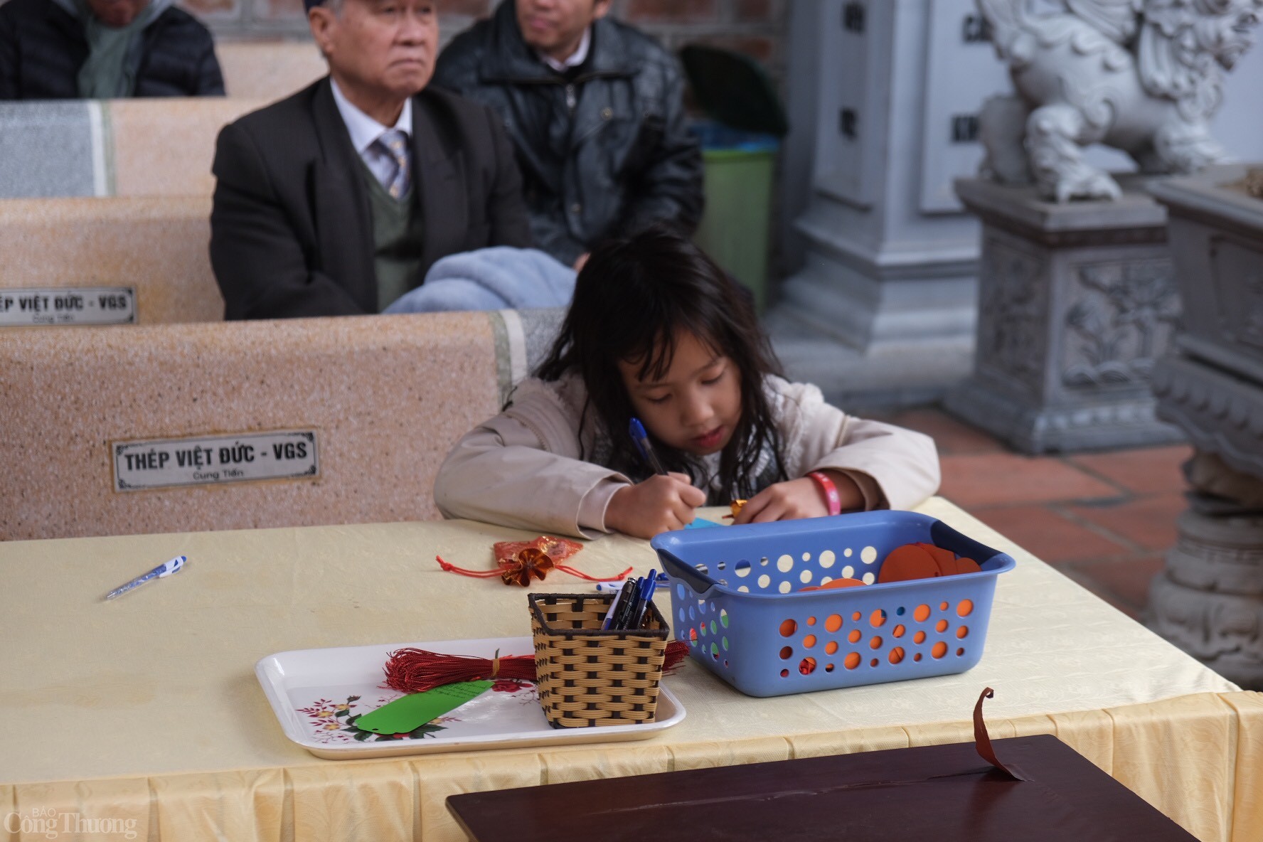| Khách tham quan viết những lời cầu an tại chùa Linh Đường, còn được biết đến với tên gọi chùa Liên Đàm, tọa lạc tại phường Hoàng Liệt, quận Hoàng Mai. Ảnh: Lê An |