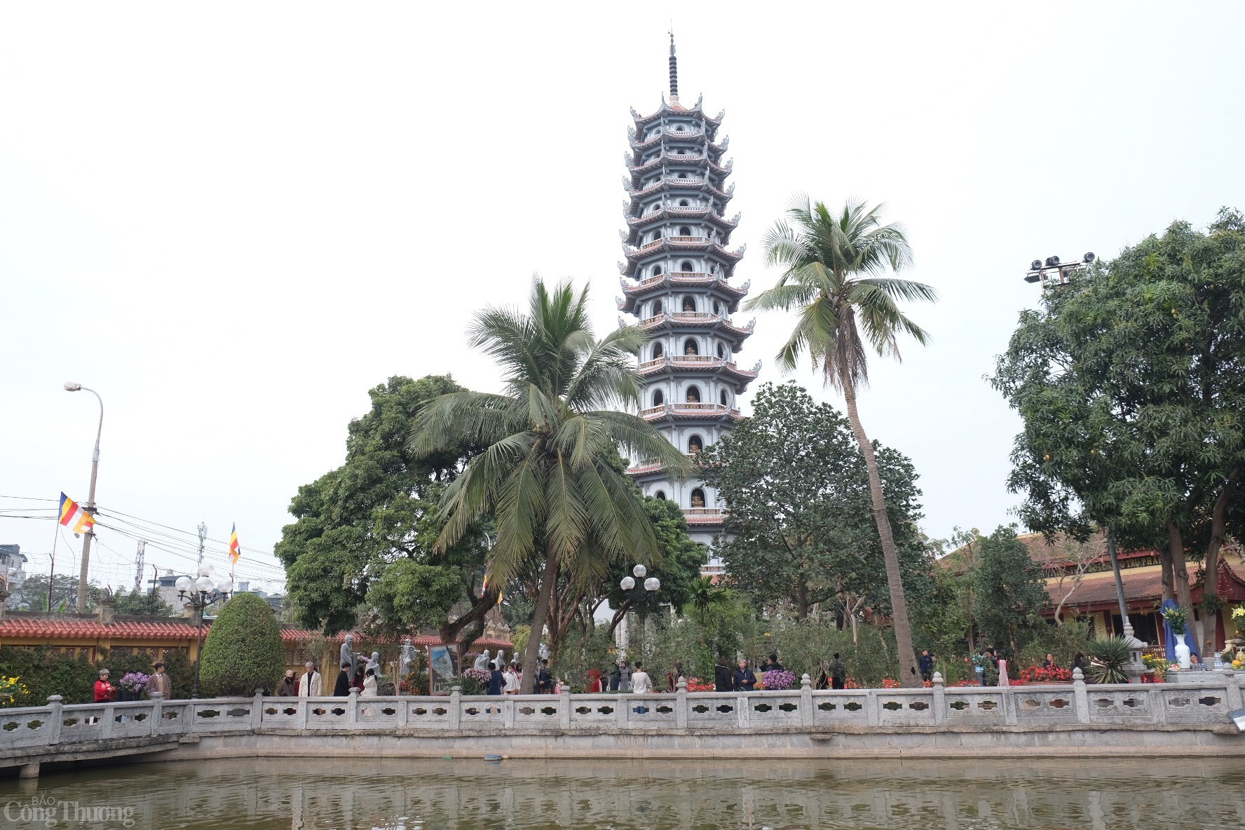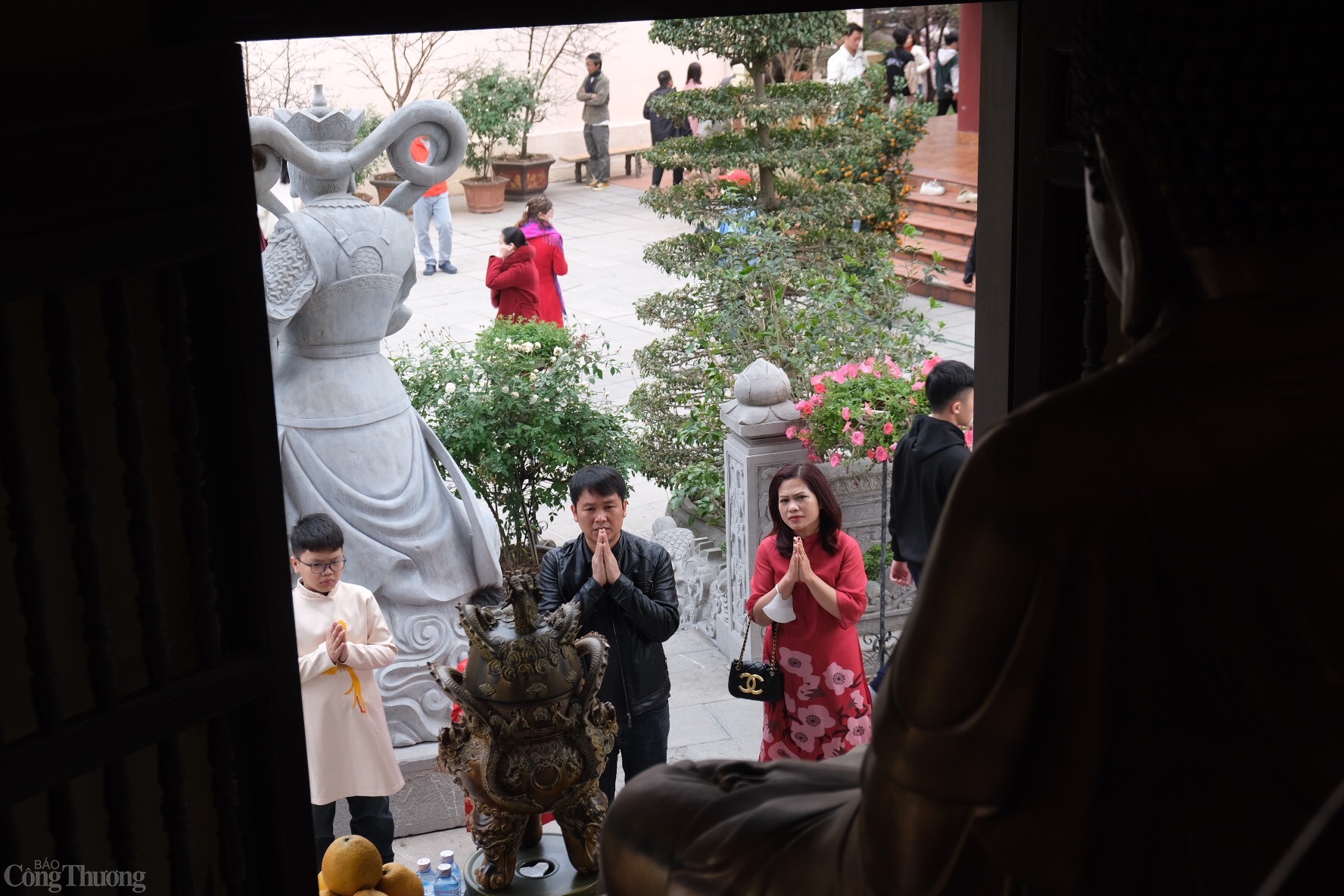 | Tại Hà Nội mùng 1 Tết Ất Tỵ, ánh nắng ấm kèm phảng phất vài hạt mưa xuân đã đem đến tiết trời dễ chịu, phù hợp du xuân. Do đó, xuyên suốt cả ngày, chùa Quán Sứ (quận Hoàn Kiếm) luôn có đông đảo khách tới cầu bình an và tham quan. Ảnh: Lê An |
