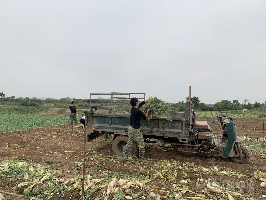 Trồng rau gần chục năm nay, bà Nguyễn Thị Hoa (xã Tráng Việt, huyện Mê Linh) cho biết, chưa bao giờ bà phải chứng kiến người trồng rau rơi vào tình cảnh thê thảm, dở khóc dở cười như hiện nay. Nhà có khoảng 7 sào đất trồng cải bẹ xanh, su hào và củ cải mà không tiêu thụ được, đành phải nhờ đến sự hỗ trợ của hợp tác xã (HTX) thu mua mong vớt vát được phần nào. Còn lượng rau, củ không bán được đành bỏ lại ruộng. “Vụ mới đến, tôi phải ra ruộng nhổ bỏ để lấy đất trồng rau khác” - bà Hoa chia sẻ.