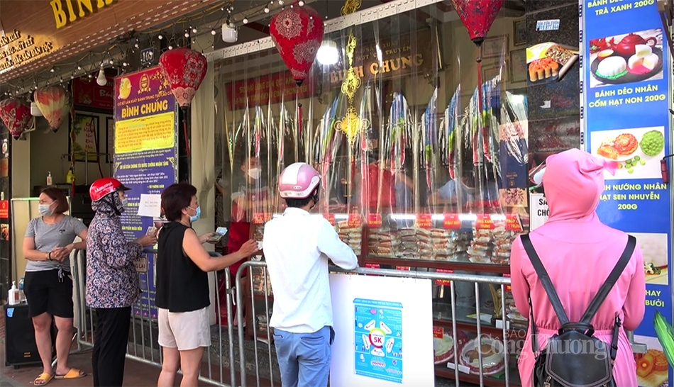 Cửa hàng bánh trung thu này đã lắp tấm chắn bằng nilon trong suốt, tất cả người dân khi đến đây đều được hướng dẫn đứng ra khỏi khu vực có hàng rào. Tại thời điểm ghi nhận, do quá nhiều người đến mua, cửa hàng đã cử nhân viên ra để hướng dẫn người dân cũng như phân luồng các phương tiện. Người dân xếp hàng, đứng đợi không có tình trạng chen lấn. Tất cả người dân đứng đợi ở đây đều cầm trên tay tờ giấy ghi thông tin loại bánh mình cần mua.