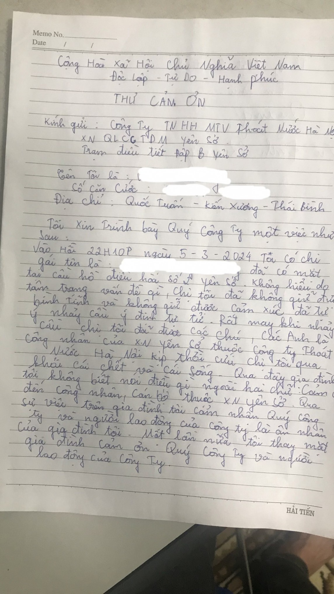 Sau khi tìm được số điện thoại của người thân cô gái, các cán bộ, công nhân Xí nghiệp Quản lý cụm công trình đầu mối Yên Sở đã liên lạc và thông báo tình hình, yêu cầu người nhà nhanh chóng có mặt.