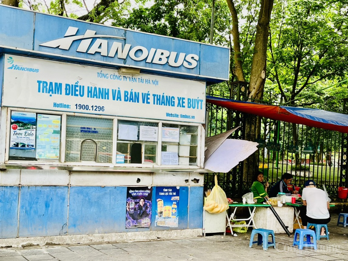 | Không chỉ lạm dụng các điểm dừng đỗ xe buýt, nhiều nơi còn ngang nhiên đặt hàng quán kế bên trạm điều hành và bán xe buýt hàng tháng - Ảnh: Phương Cúc |